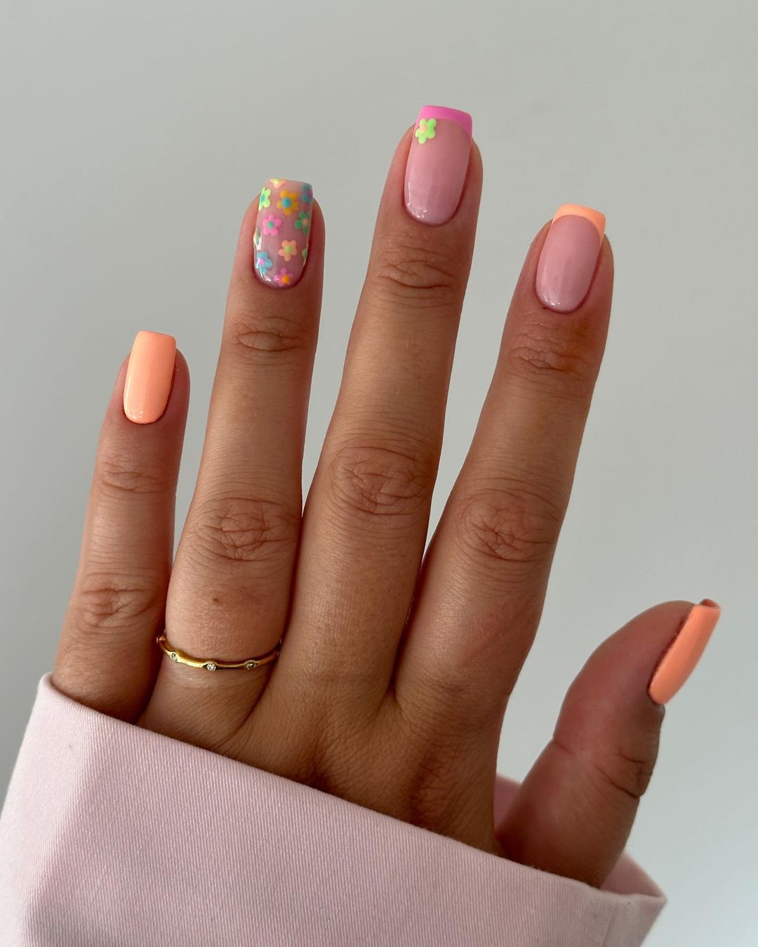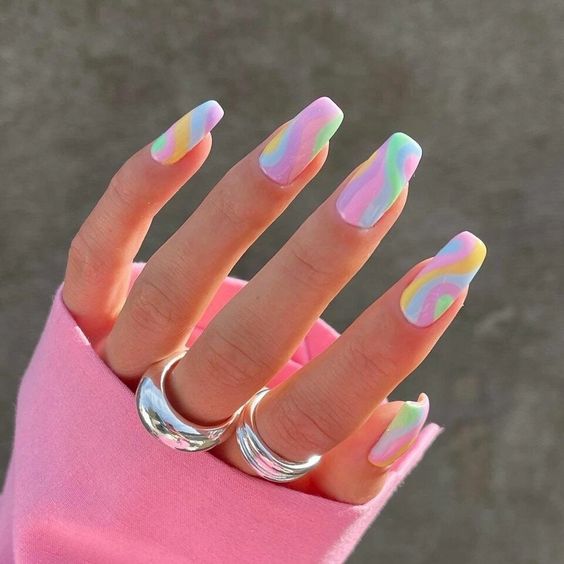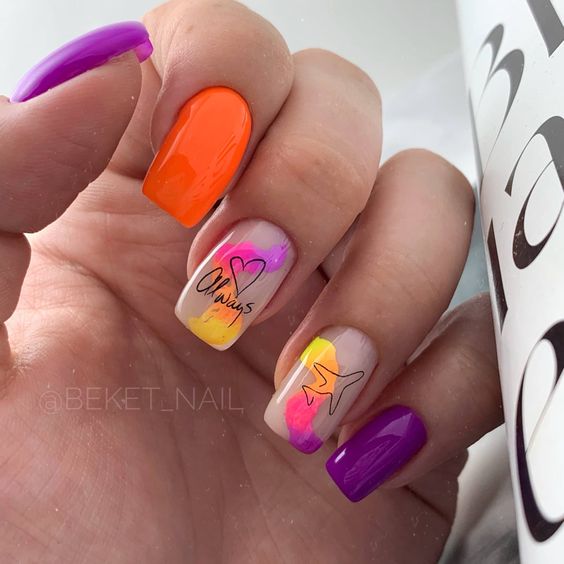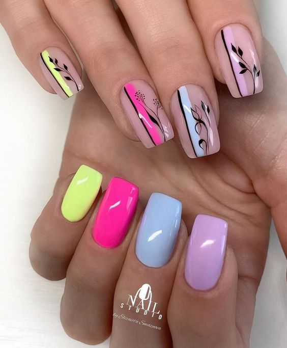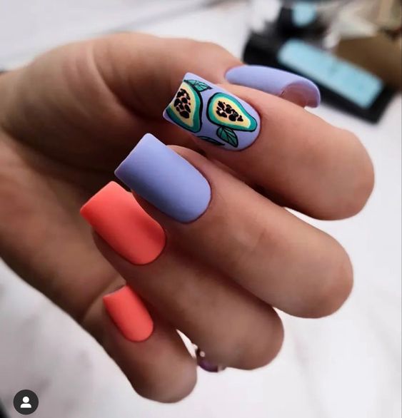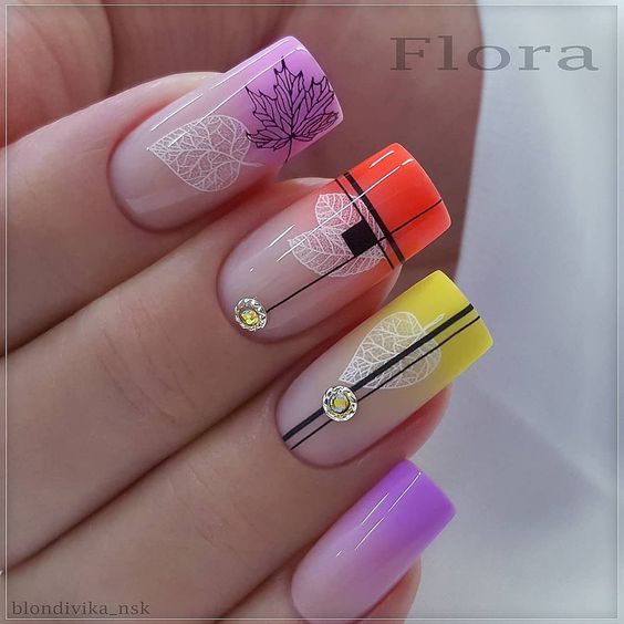 - сезонность. Каждого сезона, конечно, есть свои традиционные цвета. Осень — это теплая оранжево-коричневая гамма. Зимой традиционно в фаворе находятся насыщенные темные густые оттенки синего, зеленого и красного. А вот весной, летом можно позволить себе буйство красок в маникюре. Фактически вы можете использовать оттенки всех сезонов. Но в приоритете пастельные цвета;