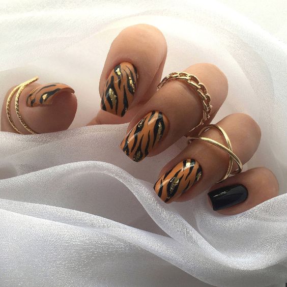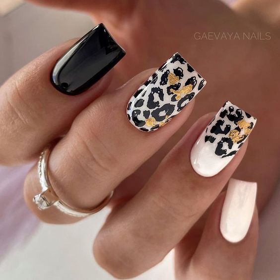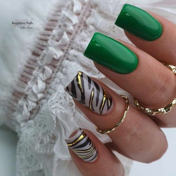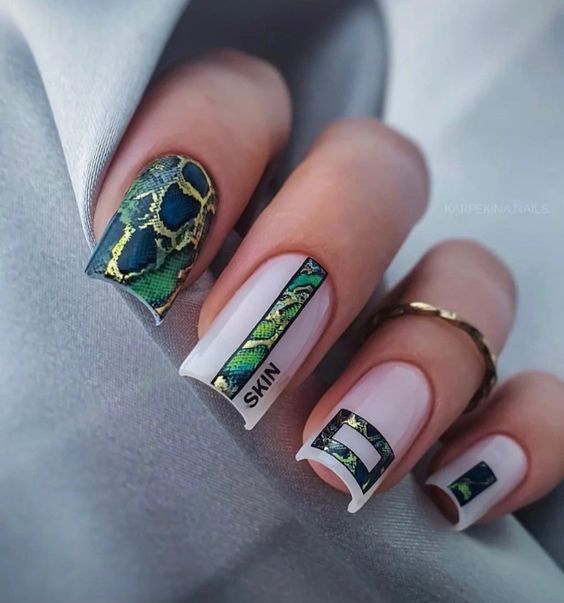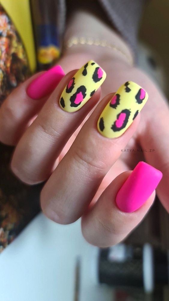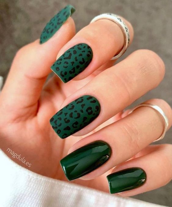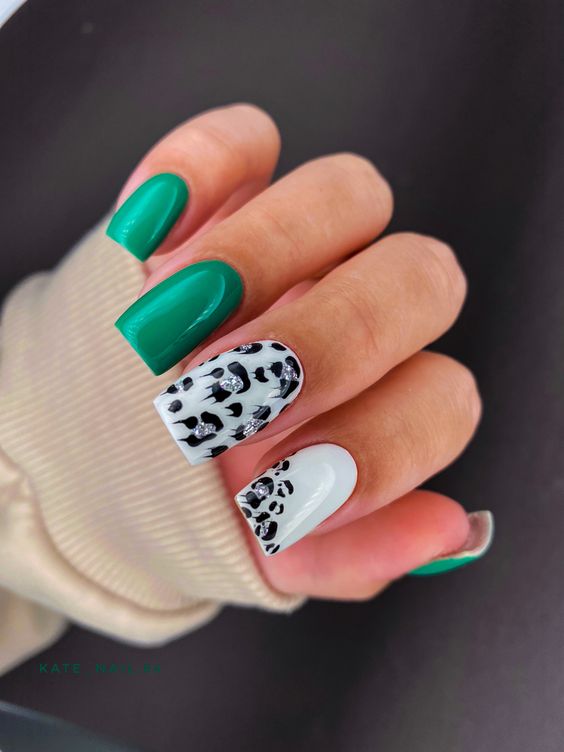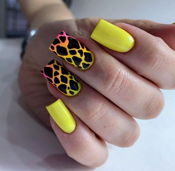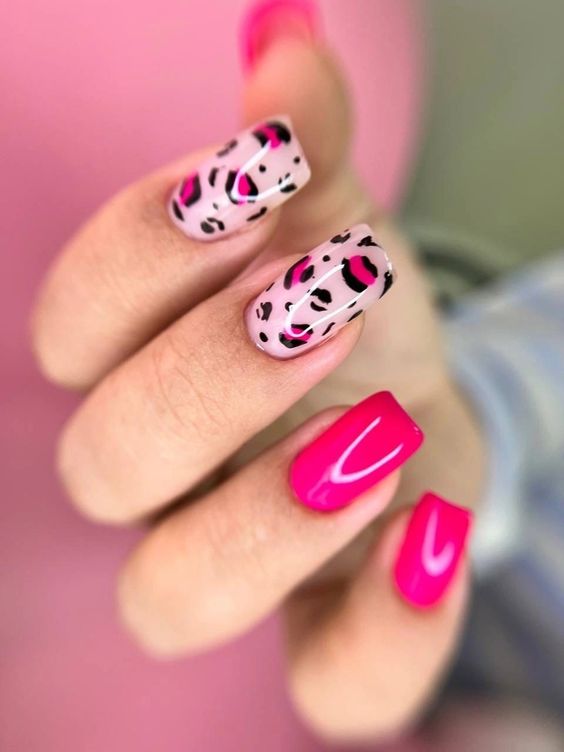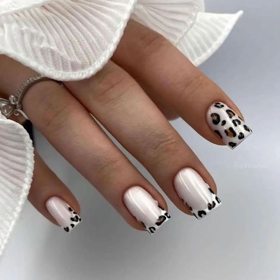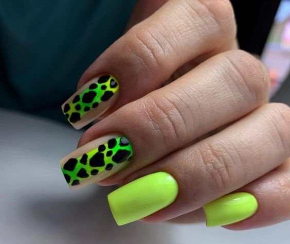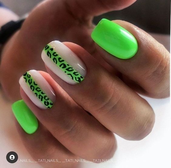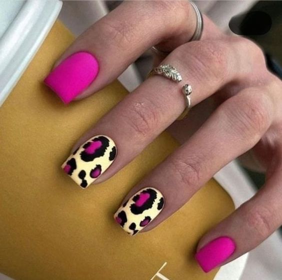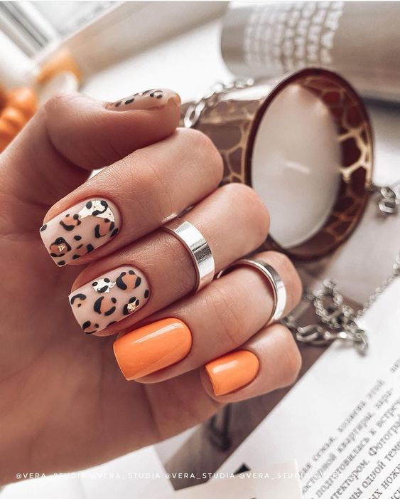 Имитация шкуры, леопарда, тигра, коровы или жирафа — это модные тенденции этого сезона. Почему — то особенно эффективно они смотрятся именно на форме ногтей — мягкий квадрат. Но мы рекомендуем модницам не зацикливаться на природном сочетание цветов. Используйте самые смелые сочетания. Например, леопардовый принт можно сделать розово-зеленым или розово-голубым. Принт в любом случае останется узнаваемым, но будет выглядеть не хищно, а очень нежно и необычно.