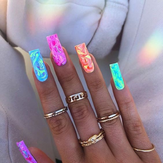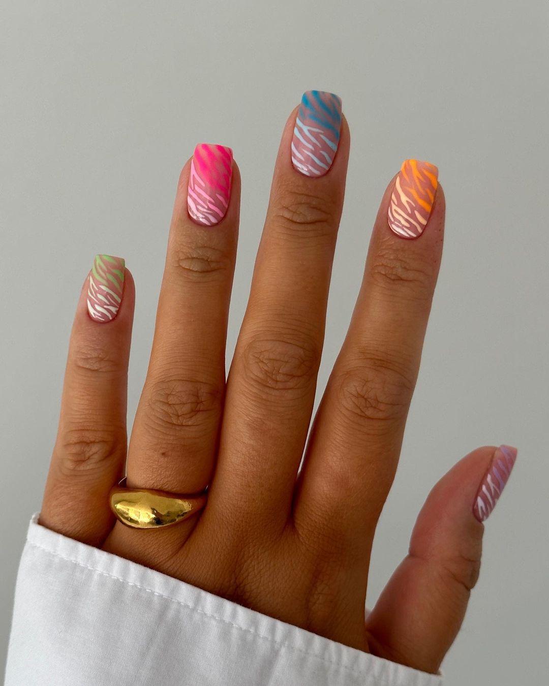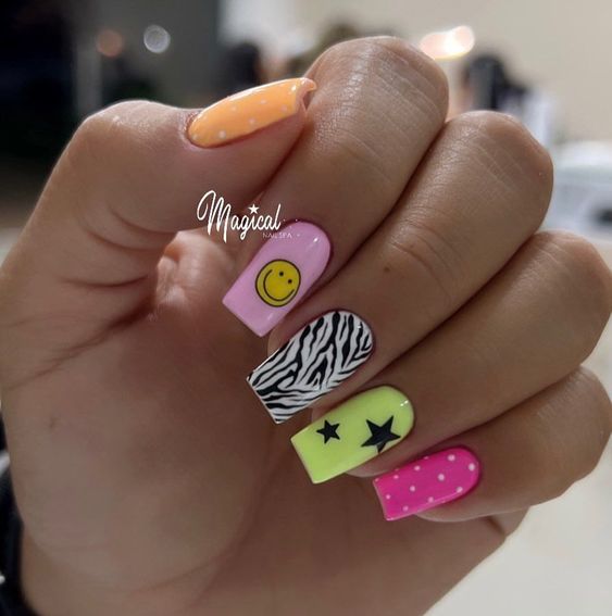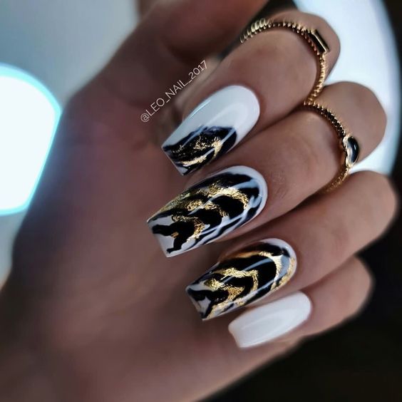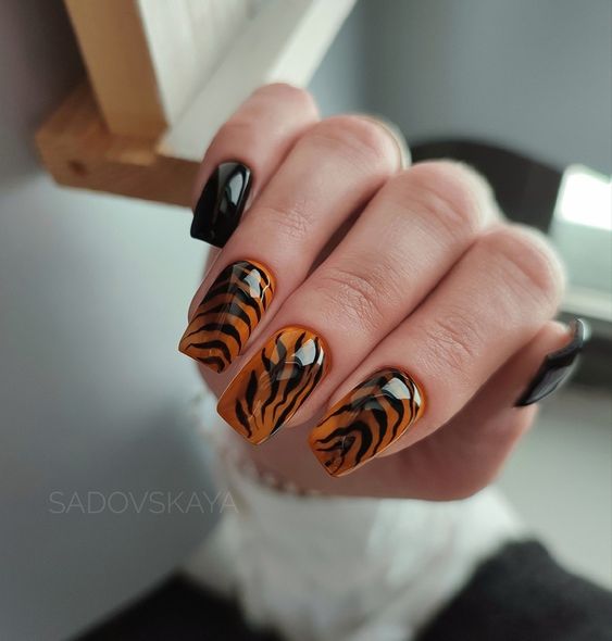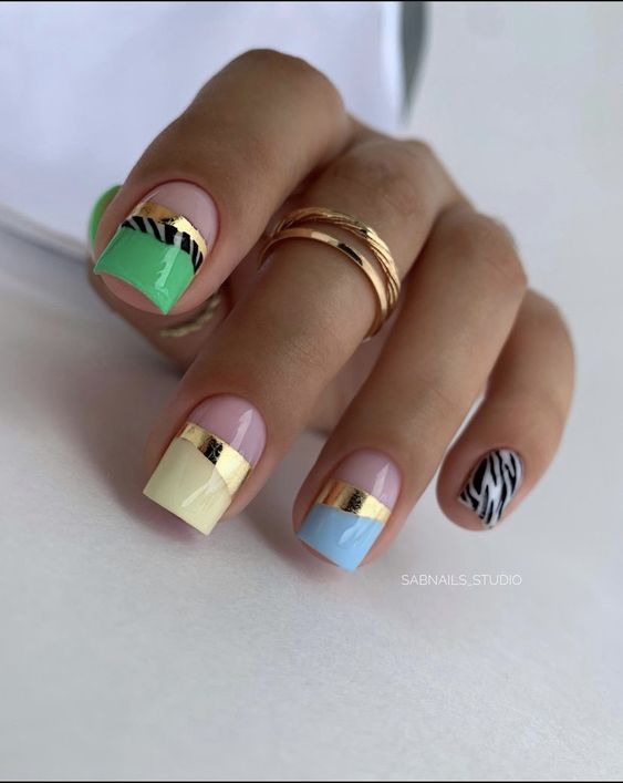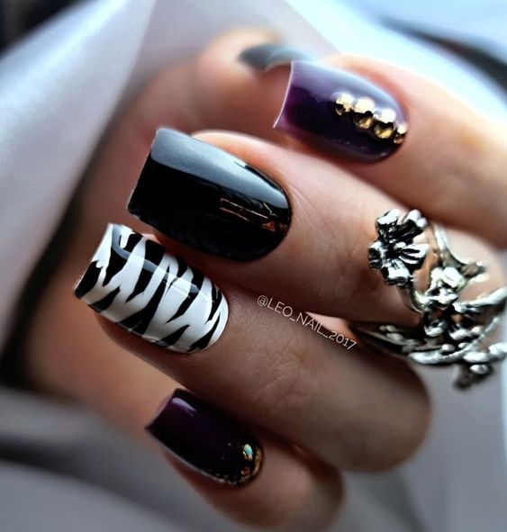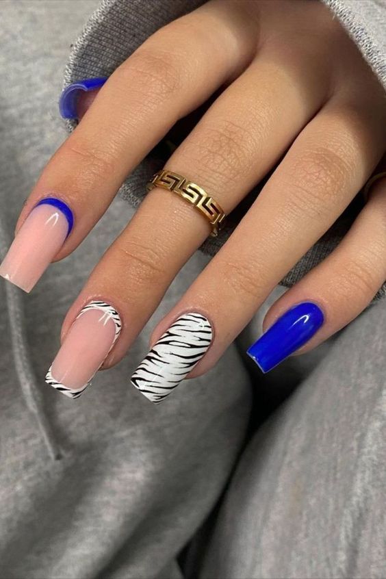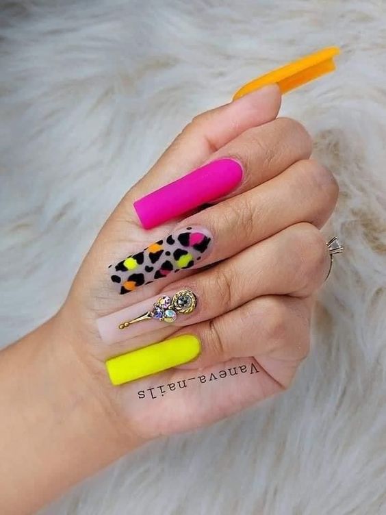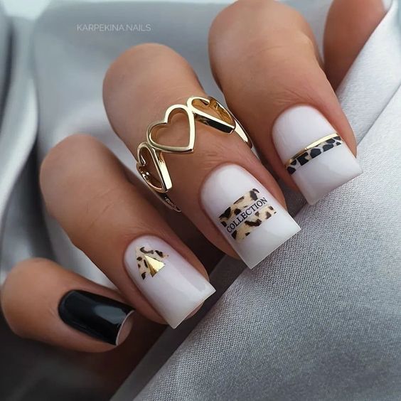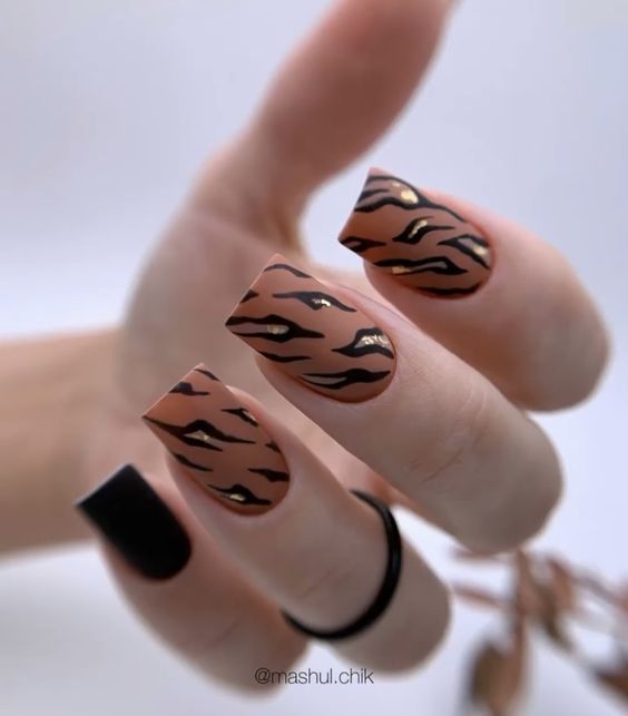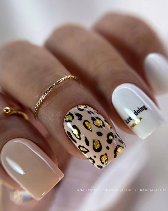 Имитация шкуры, леопарда, тигра, коровы или жирафа — это модные тенденции этого сезона. Почему — то особенно эффективно они смотрятся именно на форме ногтей — мягкий квадрат. Но мы рекомендуем модницам не зацикливаться на природном сочетание цветов. Используйте самые смелые сочетания. Например, леопардовый принт можно сделать розово-зеленым или розово-голубым. Принт в любом случае останется узнаваемым, но будет выглядеть не хищно, а очень нежно и необычно.