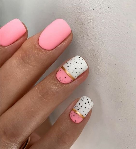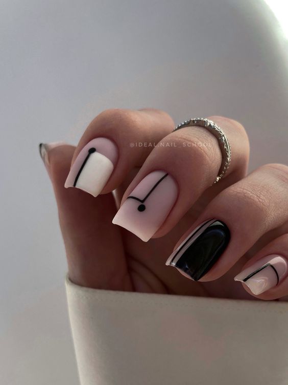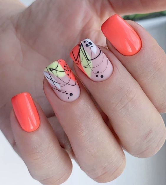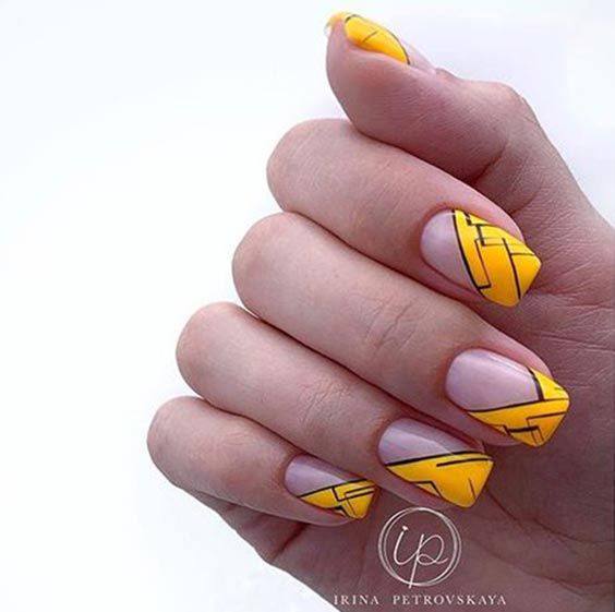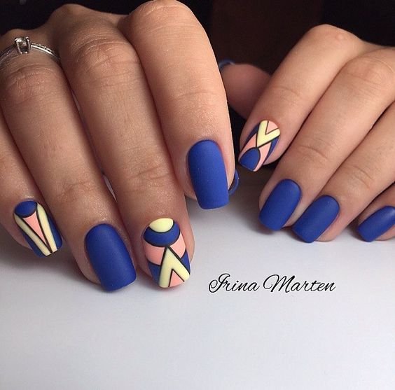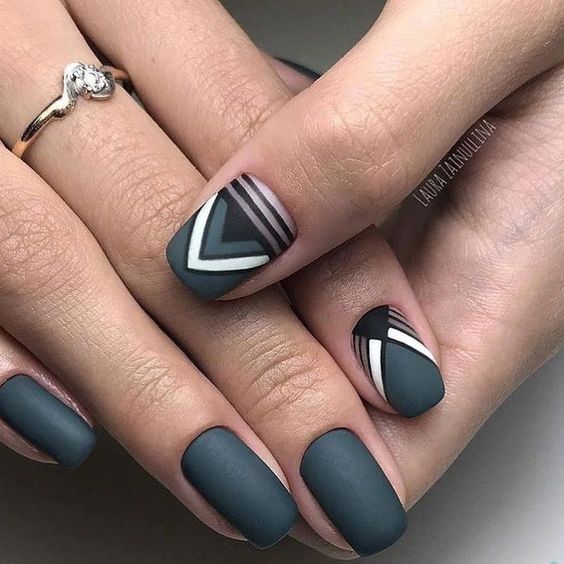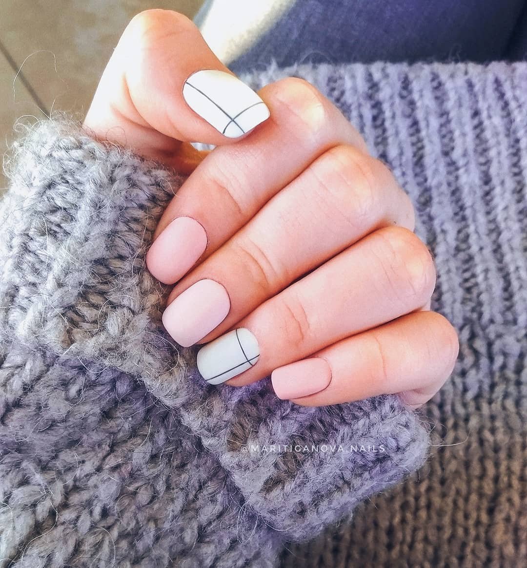 Геометрические принты актуальны уже не первый сезон. Но в этом сезоне мы рекомендуем обратить внимание не на активную геометрию, а на минималистичную. Свежей альтернативой крупным ярким элементам станут мелкие фигурки: точки, круги или линии. Их, кстати, можно наносить на все ноготки, а не только на один акцентный. Для более стильного сочетания рекомендуем выбирать матовую текстуру. А вот если выберите сложный геометрический рисунок, тогда сделайте его лишь на одном акцентном пальчике, а остальные оформите в однотонном дизайне.