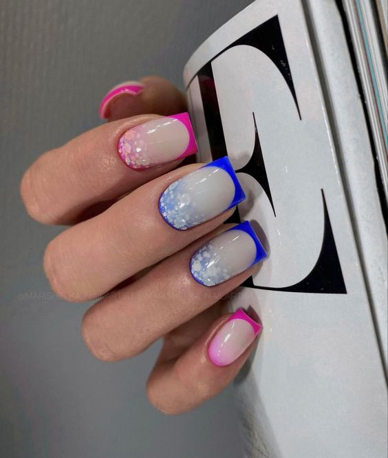 Какая подборка маникюра может обойтись без френча? Это бессменная классика, которая каждый сезон открывается для модниц с новой стороны. Удивительно, но вариативность френча поистине бесконечна. Как подружить френч с формой мягкий квадрат? Вы удивитесь, но они словно созданы друг для друга. И классический френч с белой улыбкой смотрятся более эффектно именно на мягком квадрате, а не на привычной миндалевидной форме. Классический френч можно разбавить блестящими элементами типа страз, блесток или фольгированных рисунков.