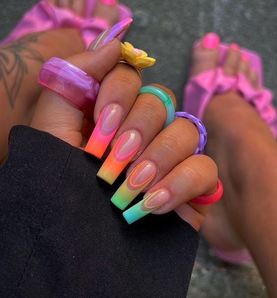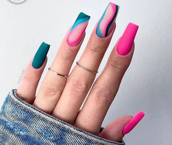 По традиции длинные ногти — это огромное поле для экспериментов. Что касается формы ногтей — мягкий квадрат на длинные ногти, то она часто приближается к форме балерина. И различить их бывает порой очень сложно. Основным отличием будет ширина, краешка, пластины. Мягкого квадрата она, конечно, чуть шире.