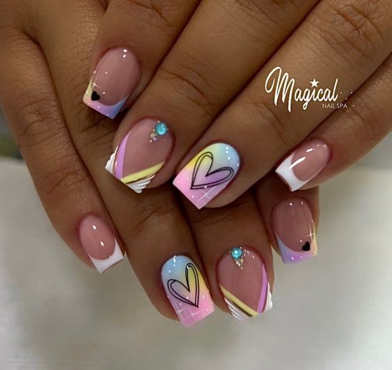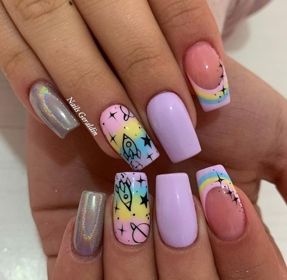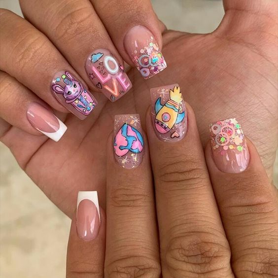 - вариативность. Стоит отметить, что на квадратных ноготках со скругленными уголками можно создавать самые разные варианты дизайнов. Это может быть романтичной — декор или очень смелый и решительный. Выбирать только вам.