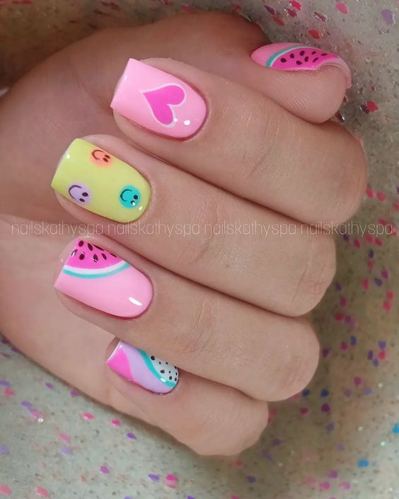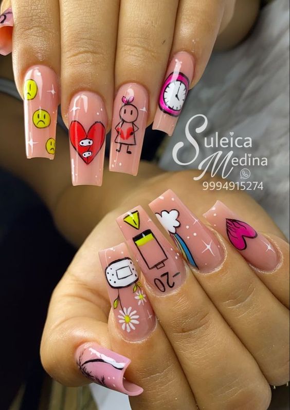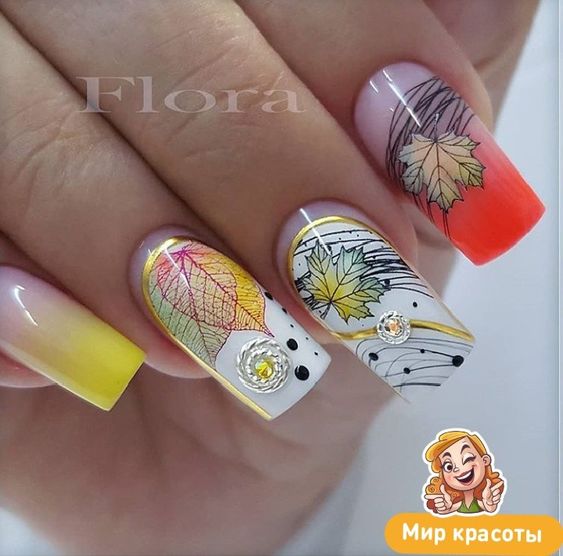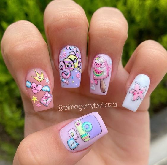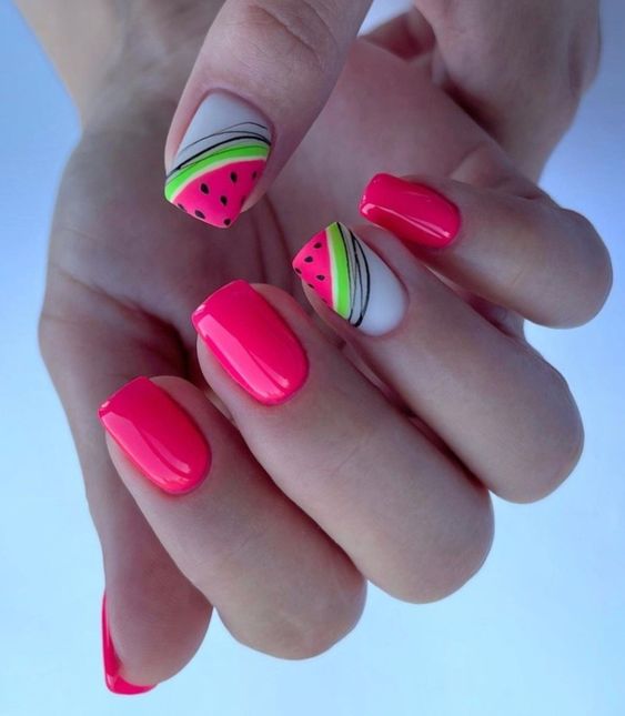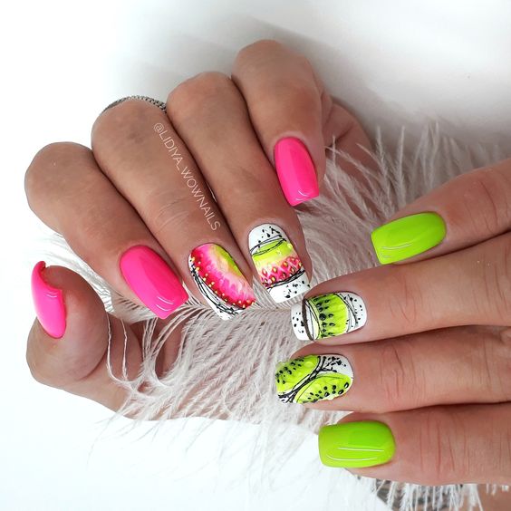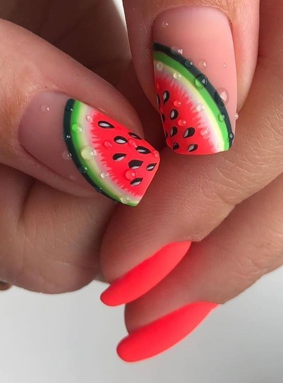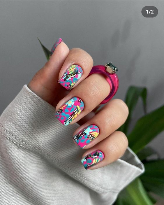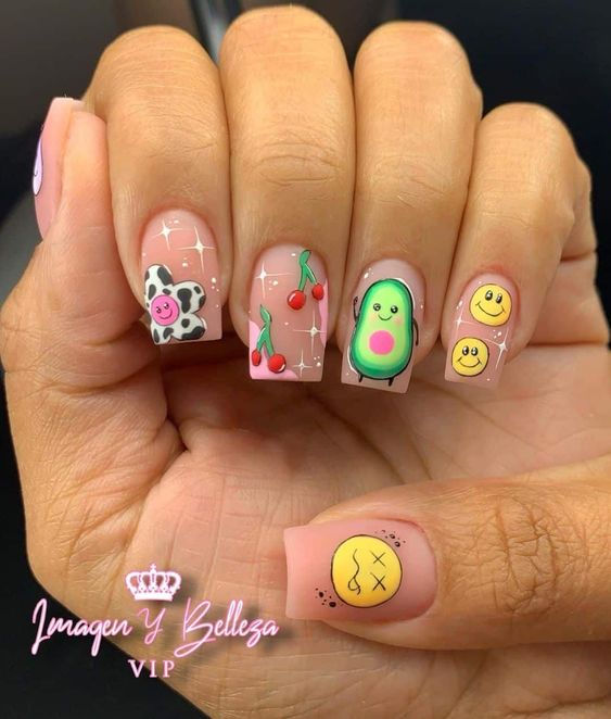 Маникюр с рисунками — одно из популярных модных направлении нейл-арта. Рисунки могут быть самыми разными: от яркой флористики до сезонной атрибутики. Например, зимой это могут быть снежинки, олени и новогодние игрушки. А летом популярными являются рисунки фруктов, ярких цветов и разнообразных веточек.