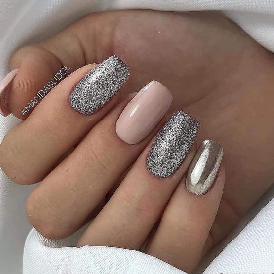 Добавить блеска маникюру на форме мягкий квадрат, помогут блестки и стразы. Но не усердствуйте. Маникюр в этом сезоне не должен быть перегруженным. Его эффектность именно в том, что он будет сдержанным и выверенным. Если планируете сделать праздничный торжественный маникюр, выберите акцентный пальчик и нанесите на него самый активный и плотный дизайн, какой выберете. Этого будет достаточно для того, чтобы выглядеть эффектно и стильно.