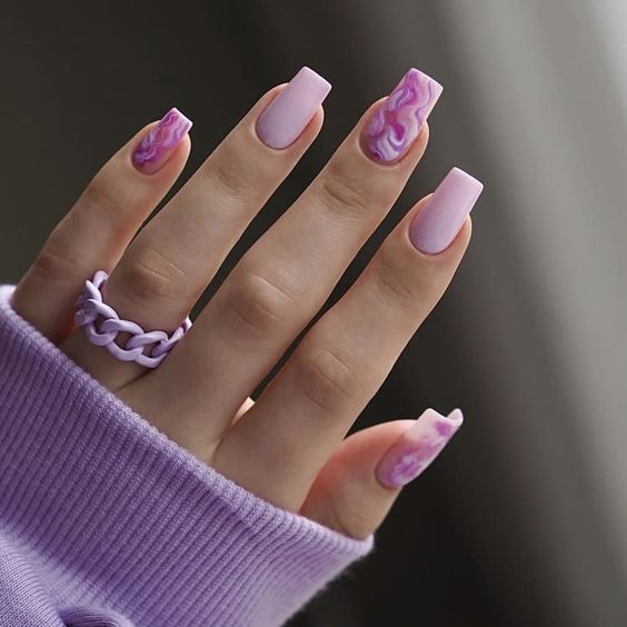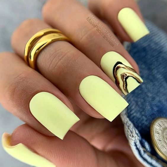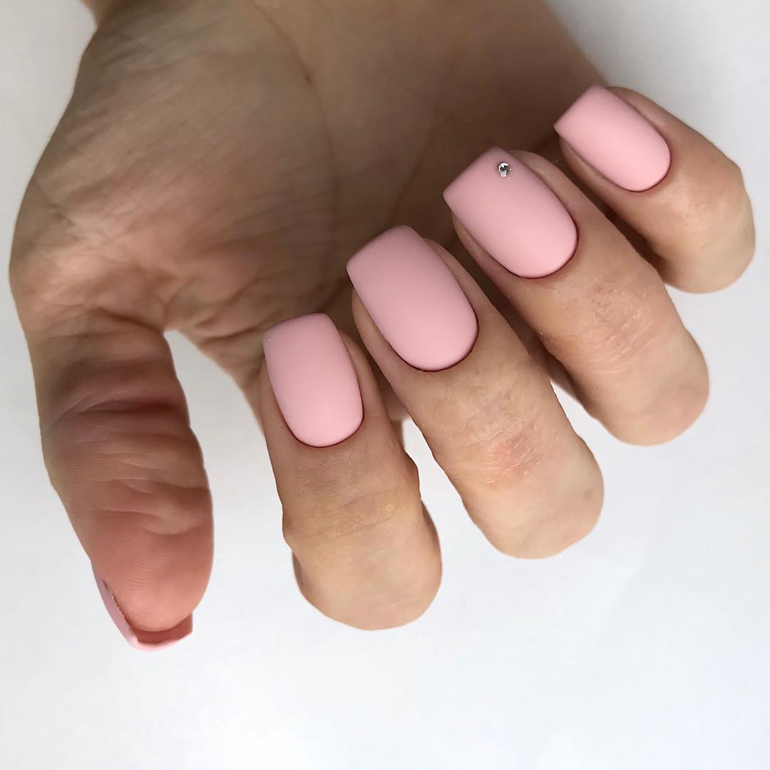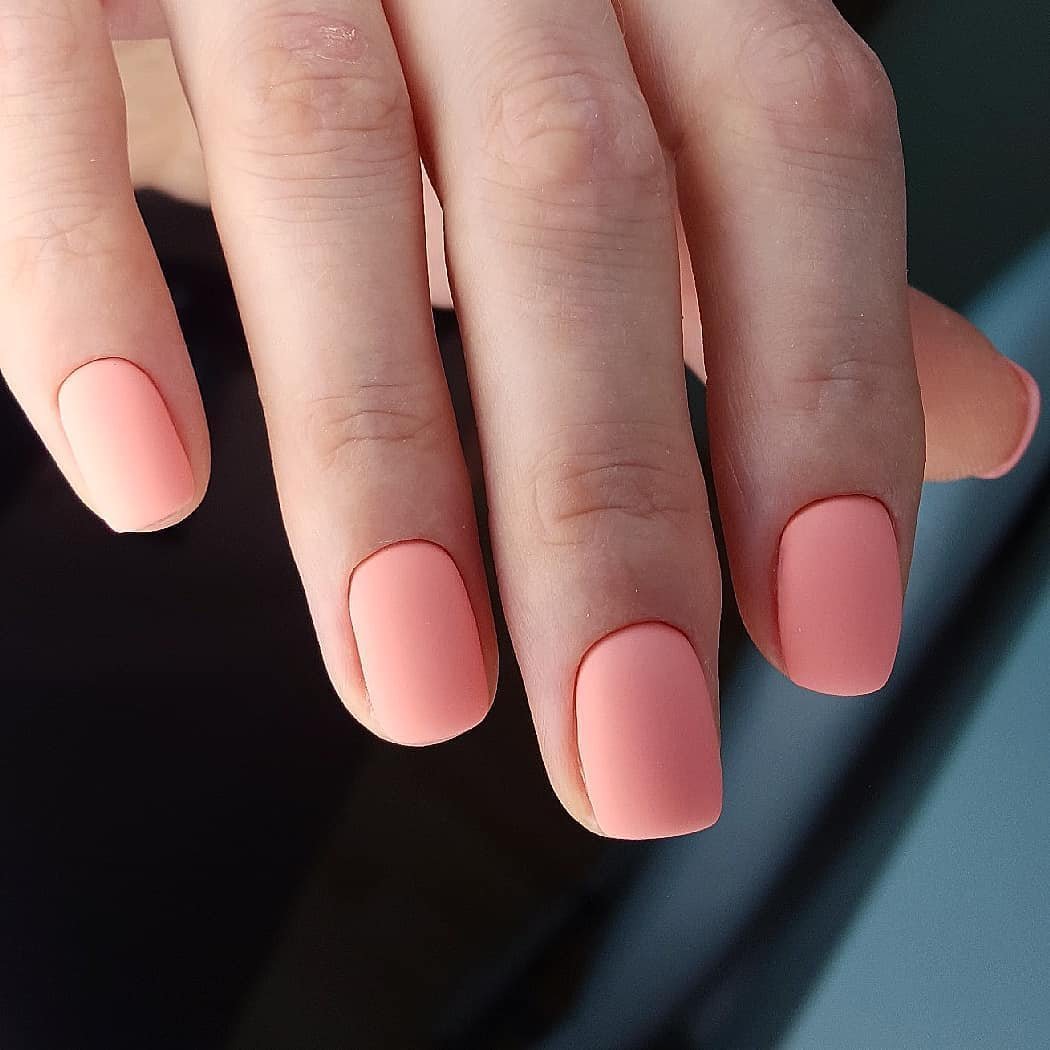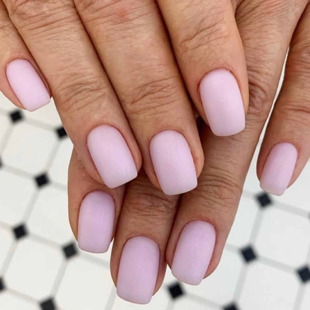 Бархатистая текстура отлично подходит мягкому квадрату. Выглядит такой маникюр довольно сдержанно, но при этом очень эффектно. Кроме того, матовая текстура уже не первый сезон держится в трендах и не собирается покидать рейтинг.