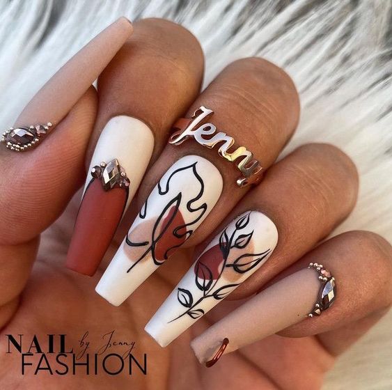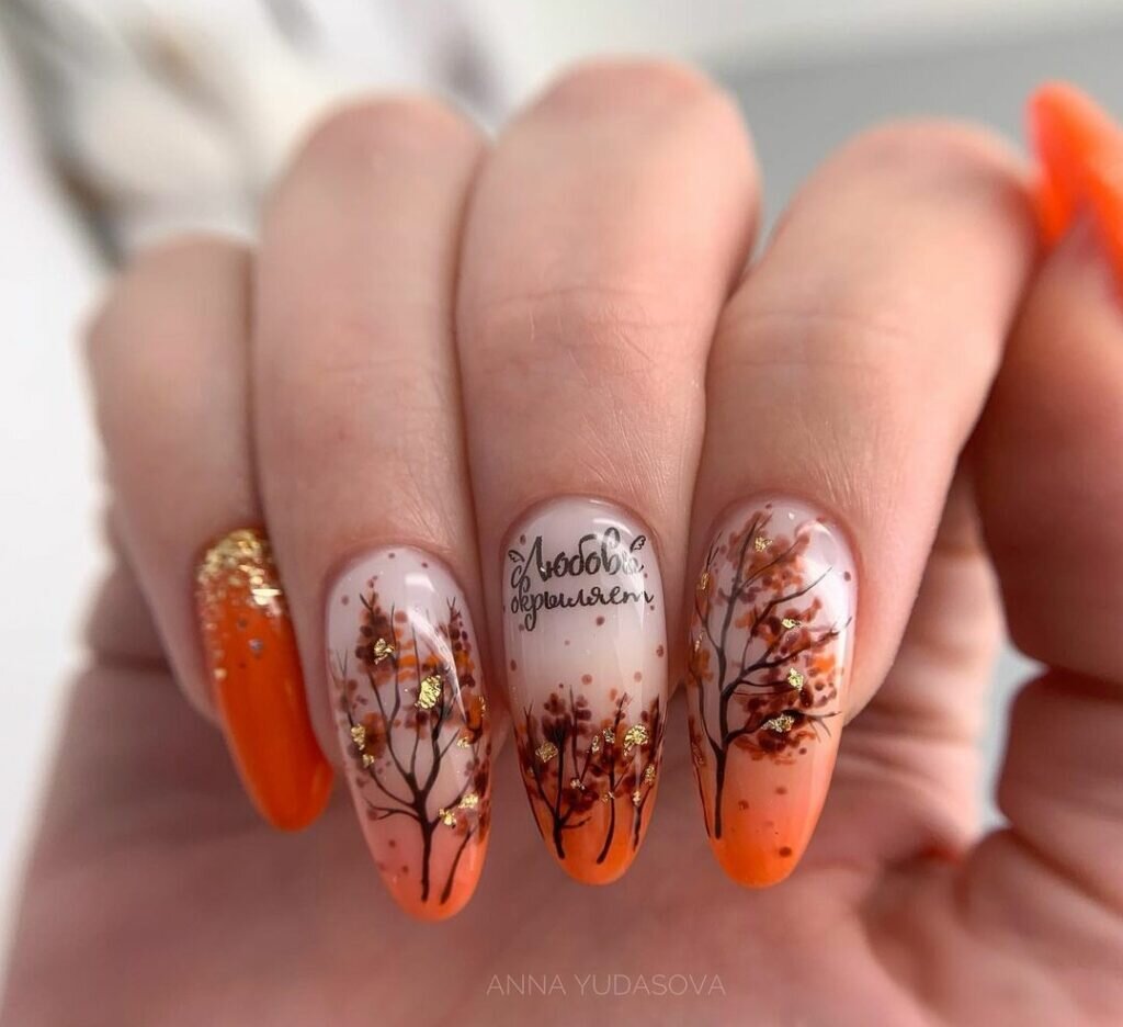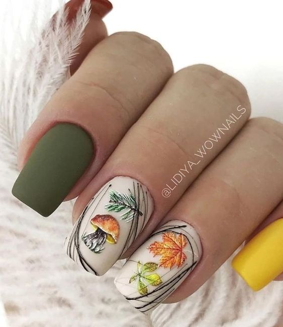 - символика и праздники: в середине осени несколько праздников, включая День народного единства (4 ноября в России). Можно использовать символику этих праздников, например, использовать флаги, силуэты героев и другие соответствующие элементы в дизайне ногтей;