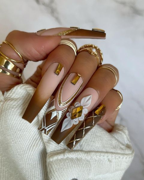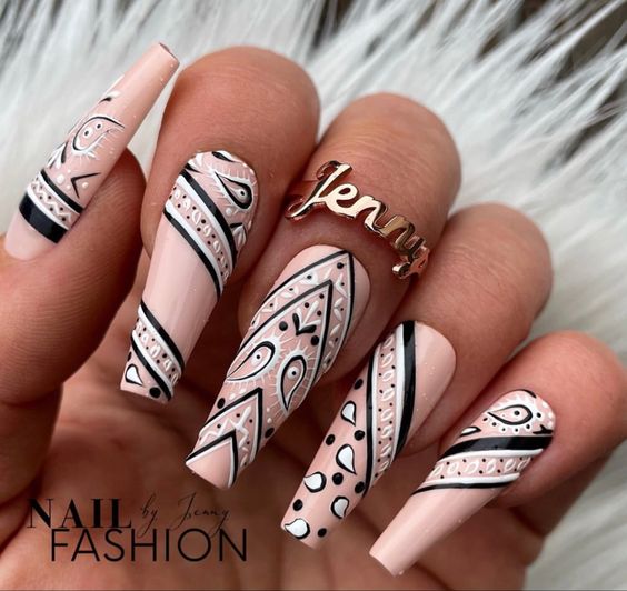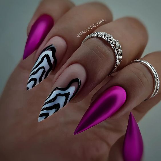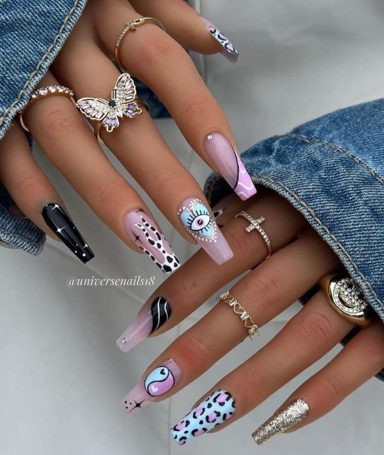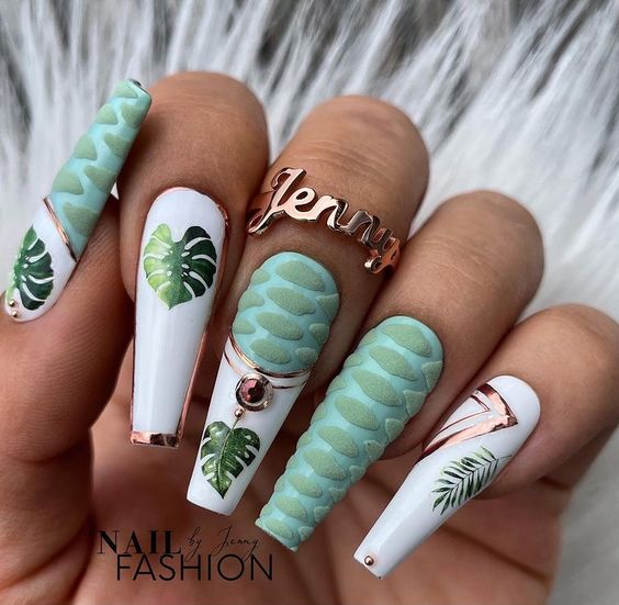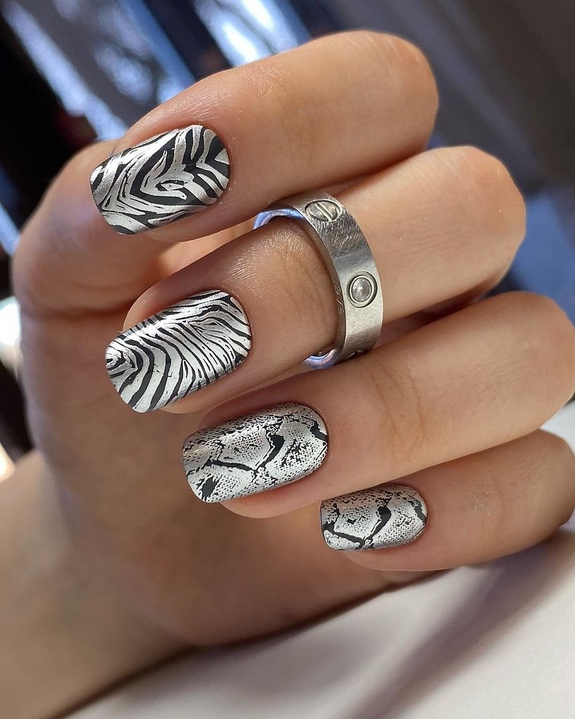 Очень популярен тренд ногтевого искусства с принтами, когда на ногтях создаются различные узоры, рисунки или печати. Это позволяет выразить индивидуальность и стиль и добавляет некую изюминку к образу.