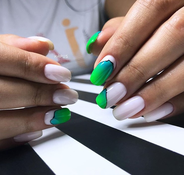 - градиентный акцент: Создайте градиентный эффект на выделенных пальцах, переливая цвет лака от одного тонка к другому. Можно использовать губку или специальные спонжи для нанесения лака.