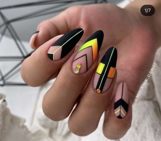 Геометрические узоры, абстрактные линии и графические элементы — это популярные тенденции в ноябре. Используйте тонкие кисти или специальные наклейки, чтобы создать интересные графические рисунки на ногтях.