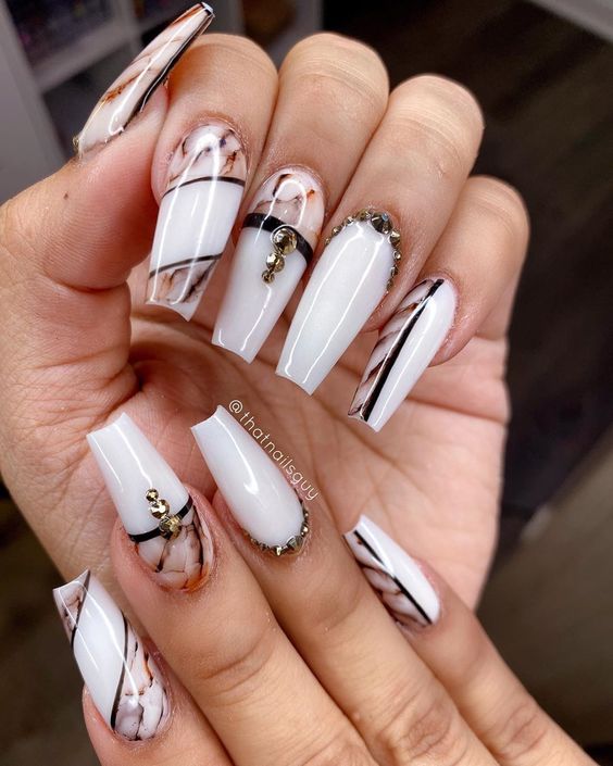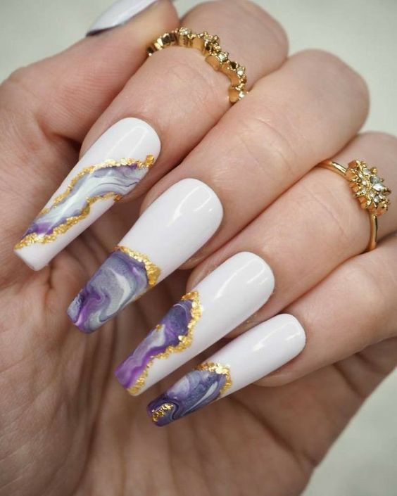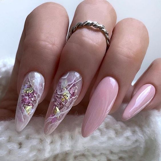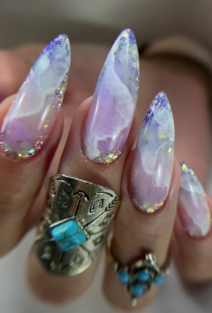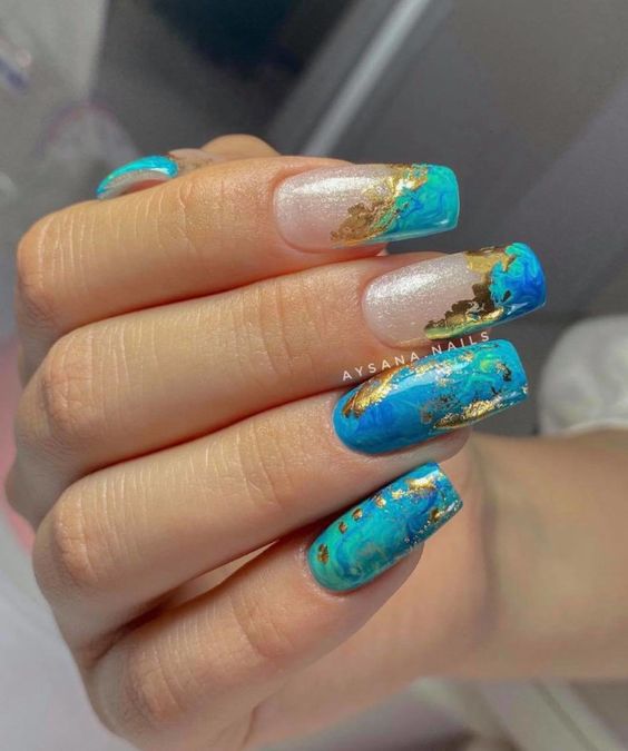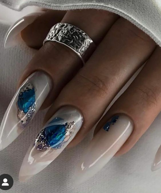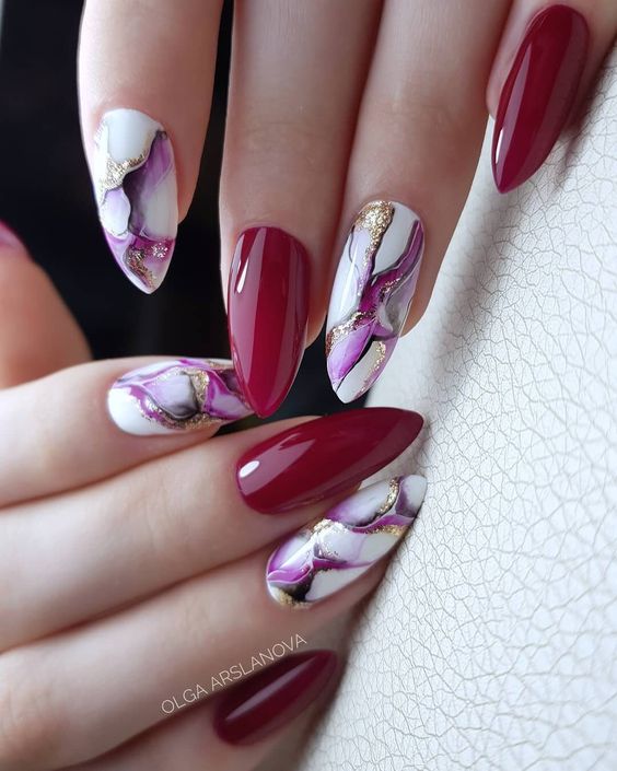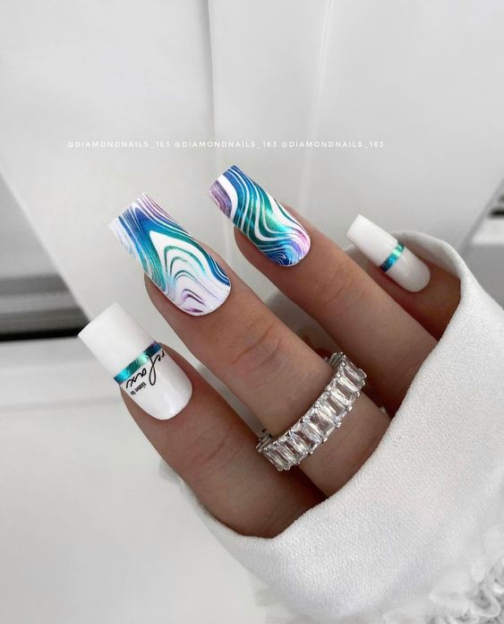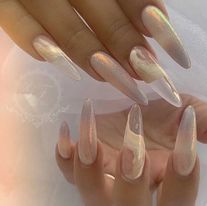 Мраморный эффект придает ногтям изысканный и стильный вид. Используйте мраморные специальные лаки или создайте мраморный эффект с помощью маникюрных гель-лаков и техник мраморирования.