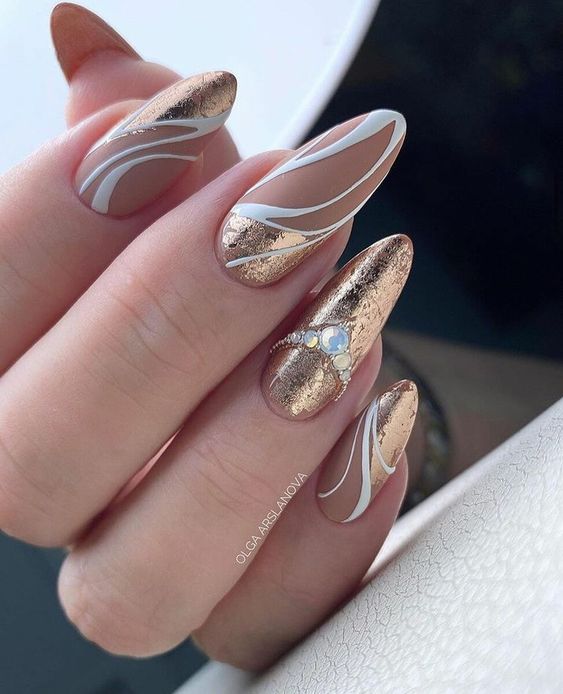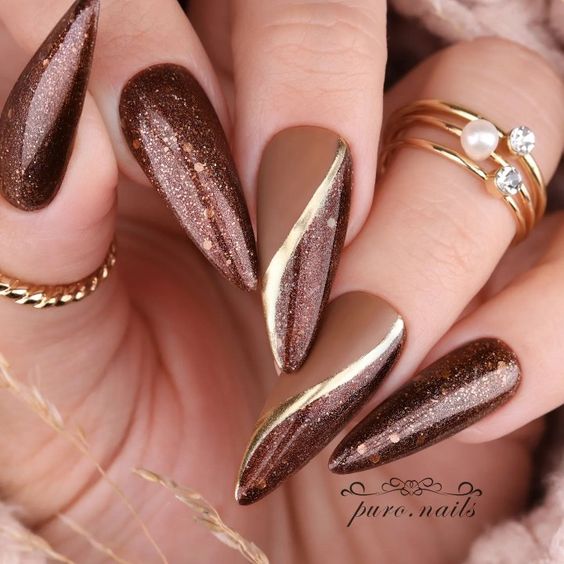 - металлические оттенки: блестящие и металлические лаки, такие как медный, золотистый или серебряный, могут быть отличным выбором для создания эффектного маникюра в ноябре;