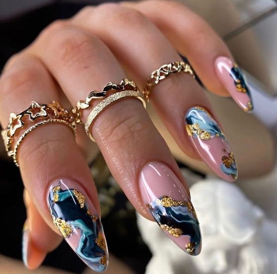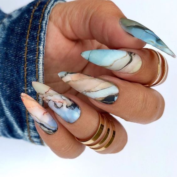 - Мраморный маникюр