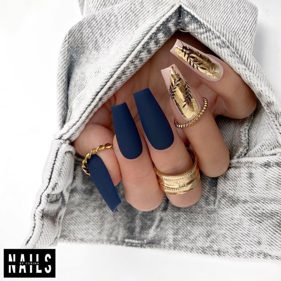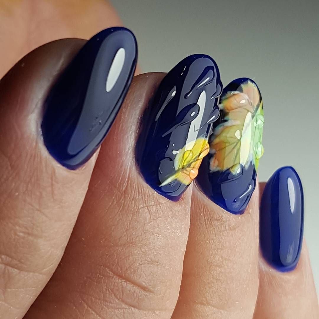 - темно-синий: глубокий синий или ночное небо — отличные варианты для ноября. Такой оттенок придает ногтям загадочность и изысканность;