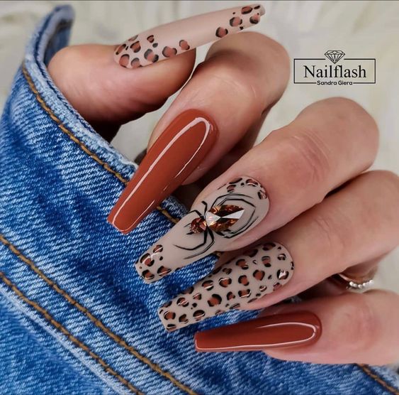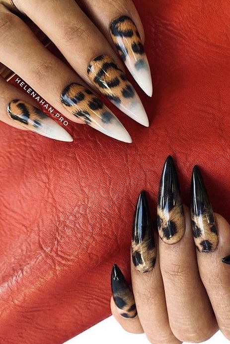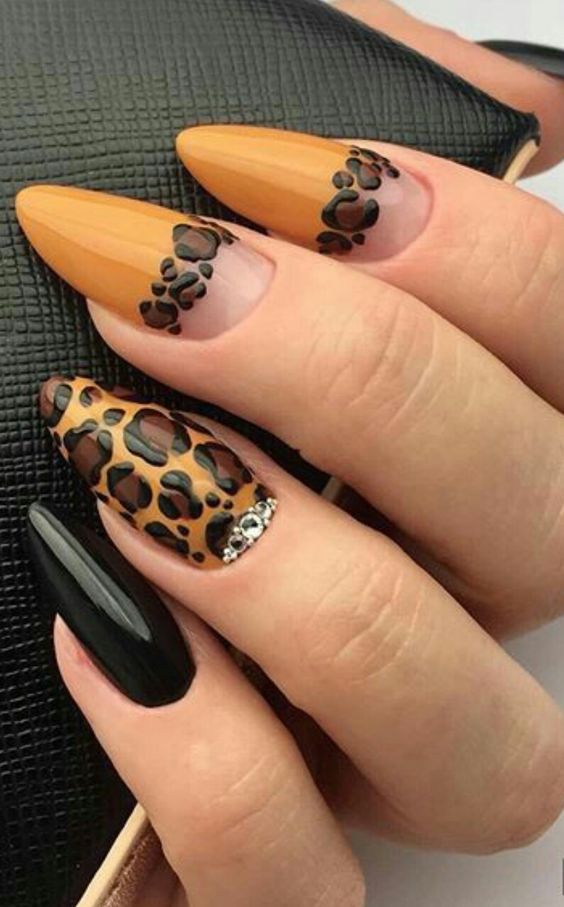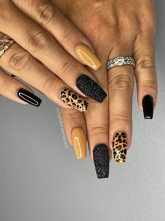 - леопардовый принт: Можно использовать акриловые краски или наклейки в виде леопардовых пятен на фоне сдержанных цветов, таких как черный, бежевый или коричневый. Также можно добавить небольшие детали в виде леопардовой головы или хвоста;