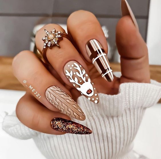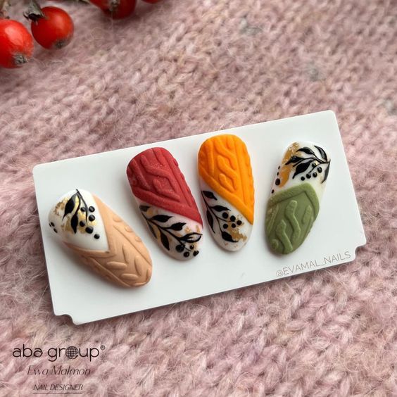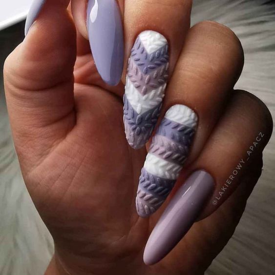 Вязаный дизайн маникюра — это креативный способ украшения ногтей, вдохновленный техниками вязания. В этом дизайне используются различные элементы, напоминающие узоры, петли и плетения, создавая ощущение того, что ногти одеты в теплые вязаные вещи.
