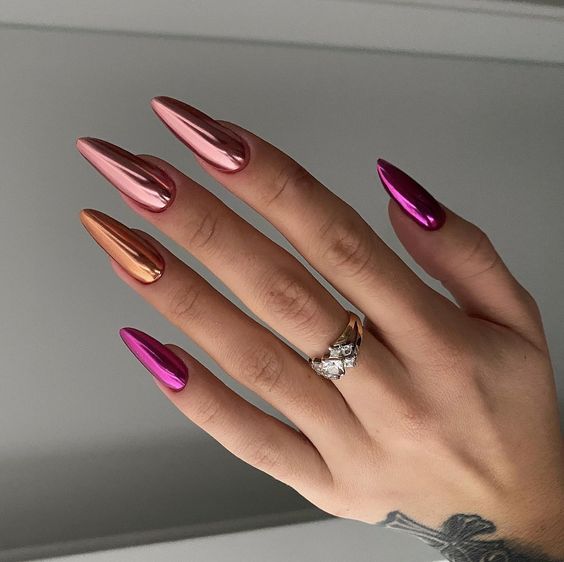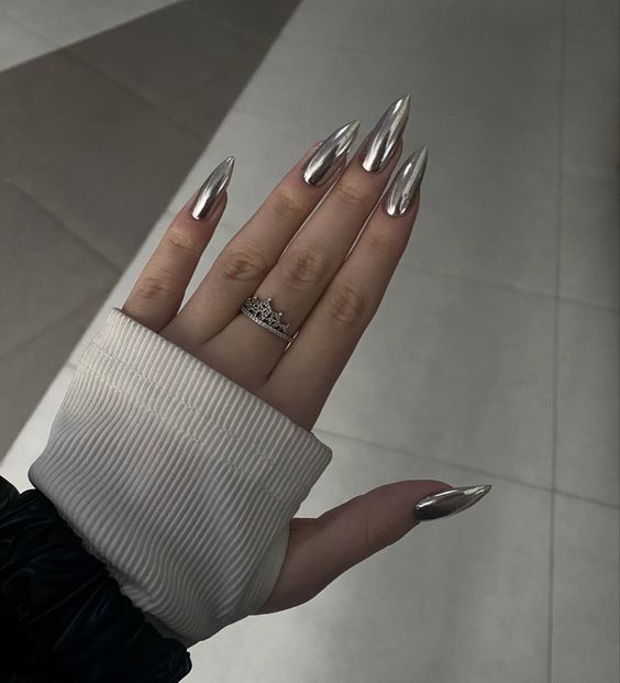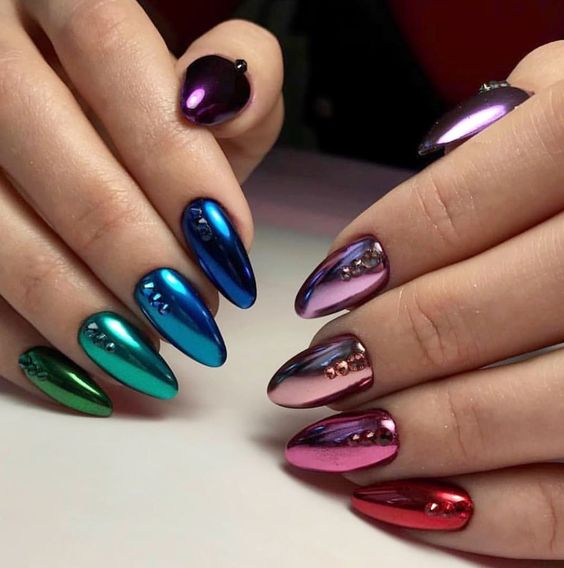 Эта техника помогает создать на ногтях эффект металлического отражения и глянцевого финиша. Используйте фольгу, специальные лаки или гель-лаки с отражающими свойствами, чтобы достичь зеркального эффекта.