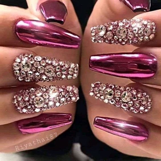 - разноцветные стразы: Использование стразов – еще один интересный способ украсить кутикулу. Вы можете выбрать разноцветные стразы и расставить их вдоль кутикулы, создавая уникальные узоры или акценты.металлические наклейки: Металлические наклейки, такие как золотые или серебряные полоски или фольга, могут добавить блеска и изящества вашему маникюру. Нанесите слой безопасного для ногтей клея на кутикулу и аккуратно приклейте металлические наклейки.