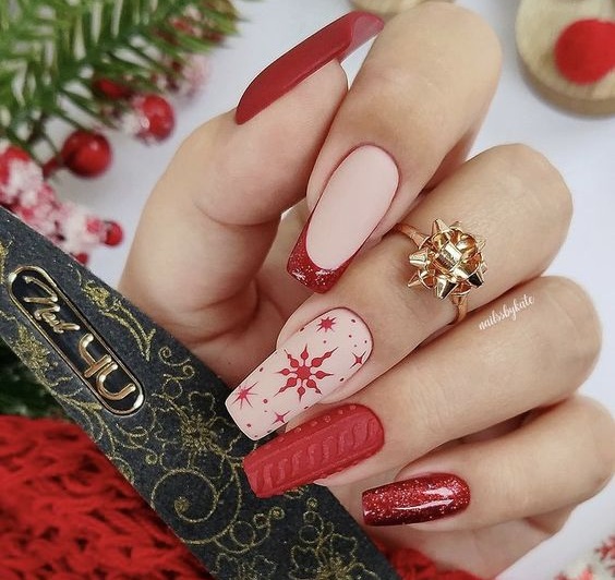 В ноябре можно использовать зимние мотивы в своем маникюре, такие как снежинки, елки, снежные верески и другие элементы, чтобы создать праздничную атмосферу.