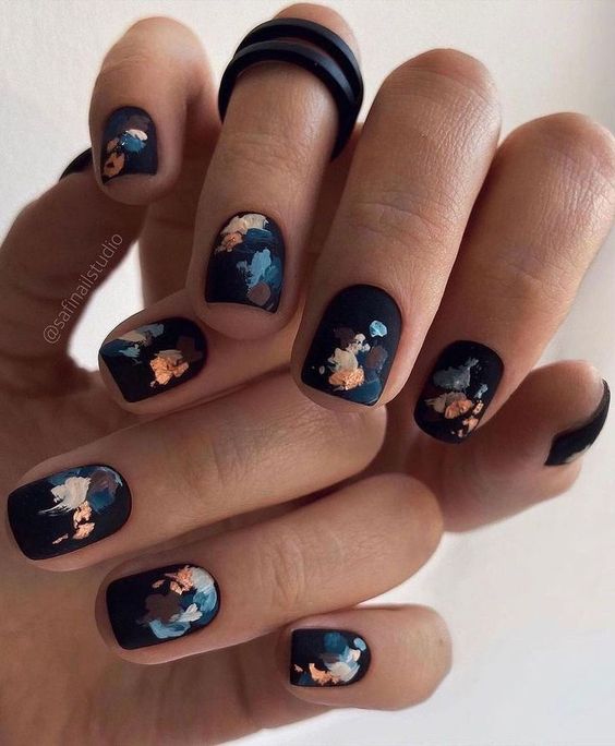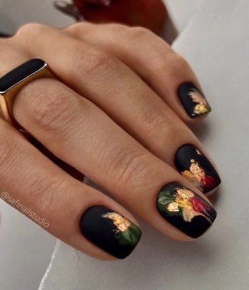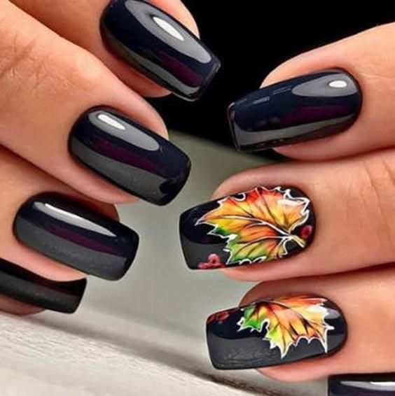 Черный оттенок в осеннем маникюре — это искусство элегантности, сдержанной роскоши и загадочности. Это символ таинственности и стиля. Он как бы погружает вас в атмосферу темного, но влекущего своей привлекательностью времени года. Это цвет, который создает контраст и глубину, обрамляя ваш образ строгостью и классической элегантностью.