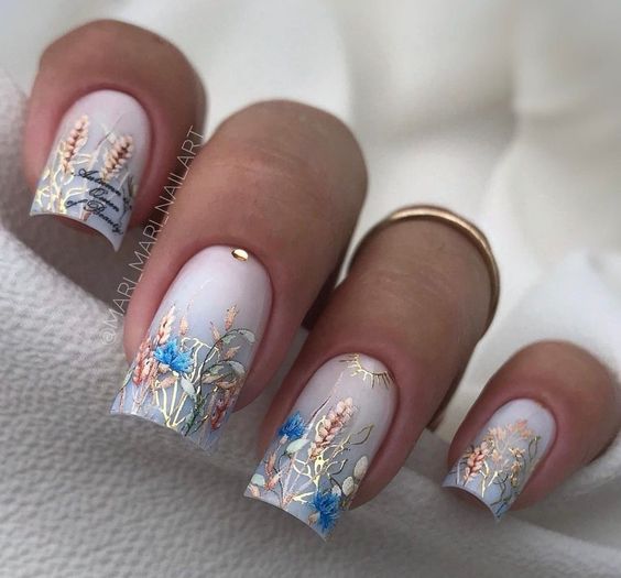 - пастельный френч. Для более нежного осеннего образа используйте пастельные цвета вместо классических тёплых оттенков. Это создаст более нежный и романтичный вид;