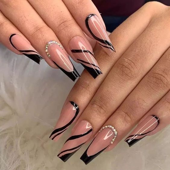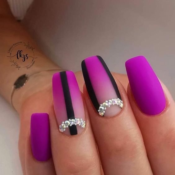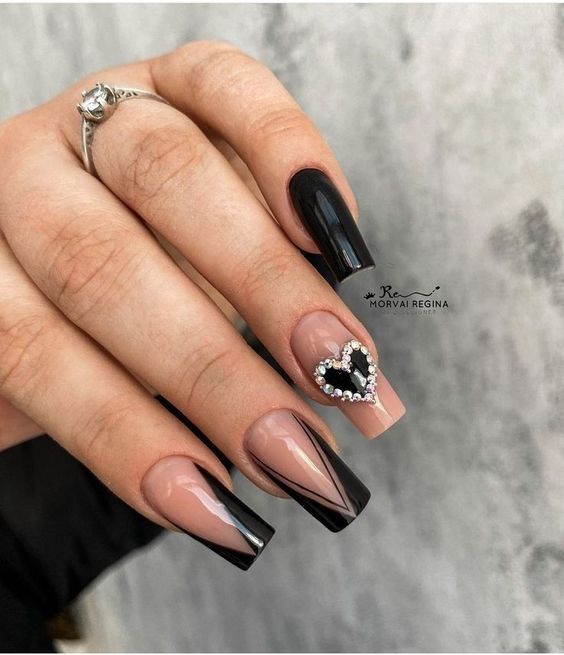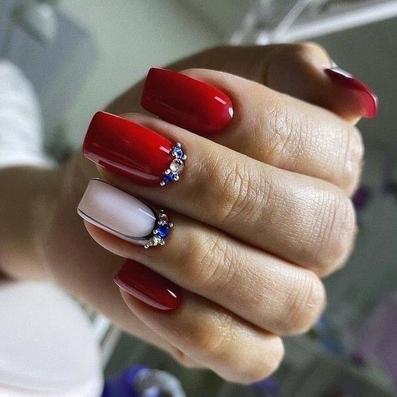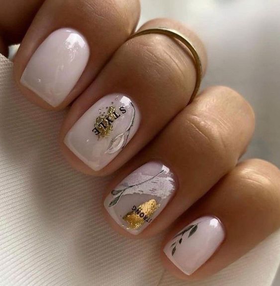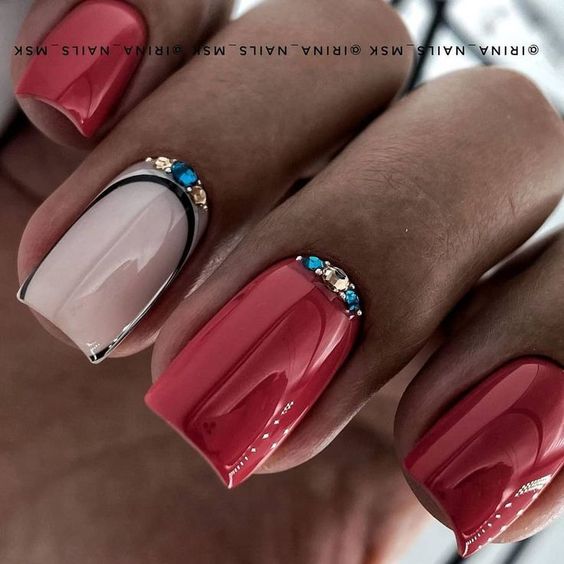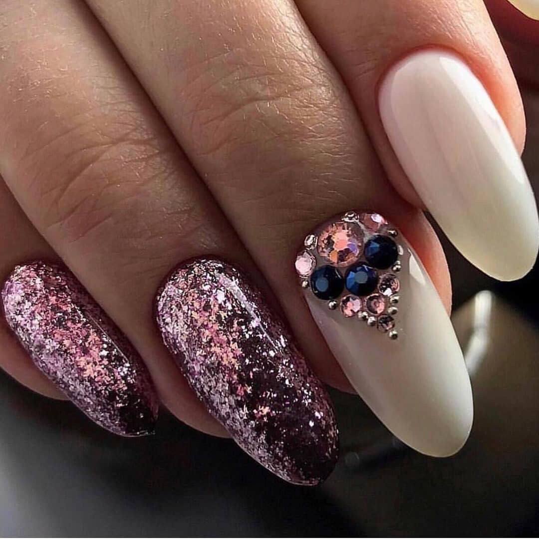 Блестки и стразы добавляют изысканности и игривости дизайну. Они могут быть применены в качестве акцентов на одном или нескольких ногтях. Например, вы можете создать акцентный ноготь, покрасив его основным цветом маникюра и украсив нанесенными аккуратно блестками и небольшими стразами в уголке ногтя.