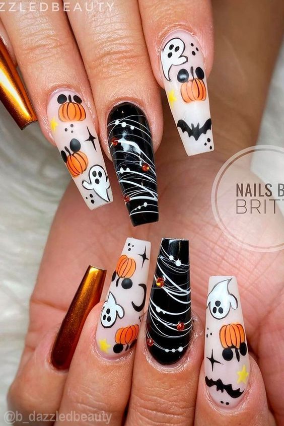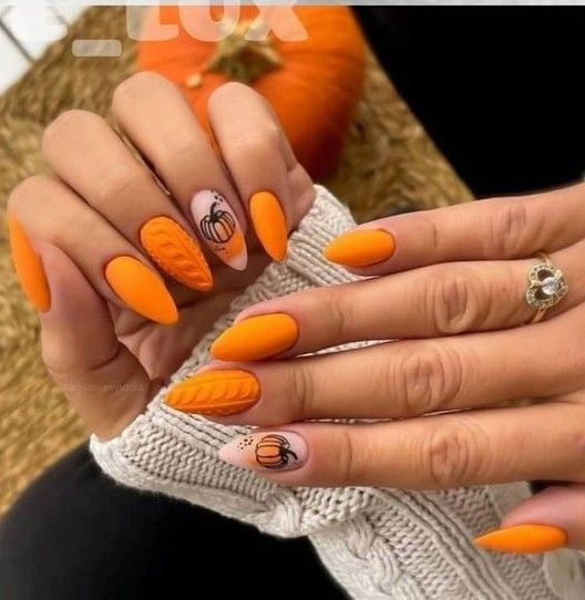- тыквы. Нарисуйте на ногтях изображения тыкв в разных размерах, а также добавьте им выразительные глаза и рты;