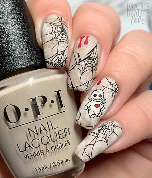 - паутина. Создайте паутину, начав с центральной точки и проведя нити к краям ногтя. Добавьте небольшие паучьи символы для усиления эффекта;