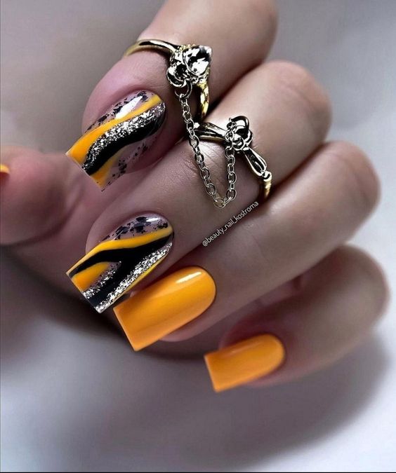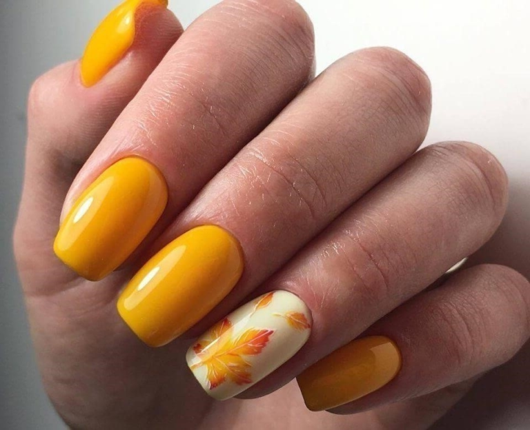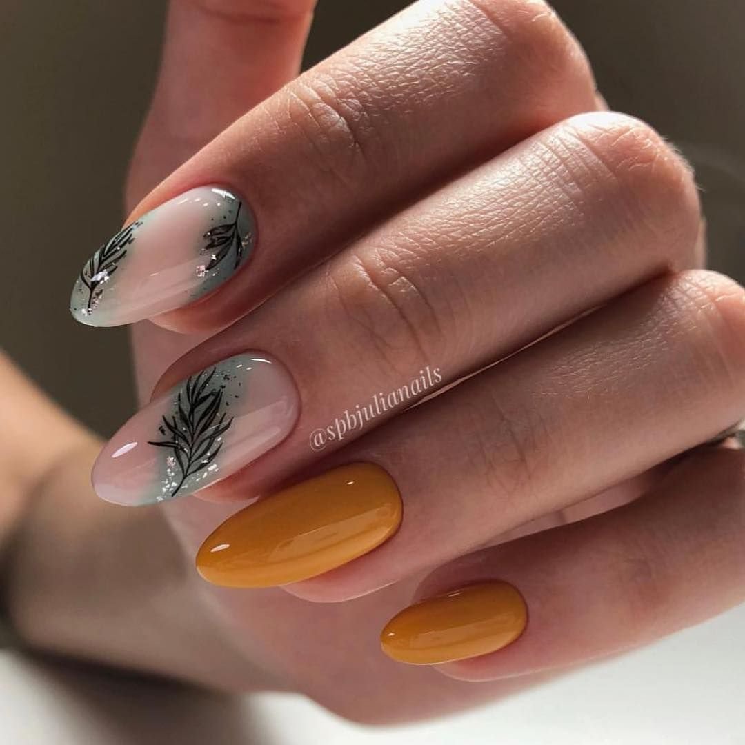 Горчичный оттенок в осеннем маникюре приносит с собой теплоту и динамичность, напоминая о золотых листьях и урожайных полях этого сезона.