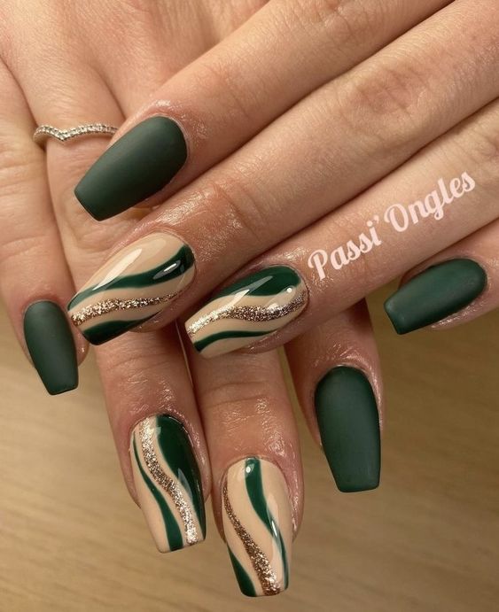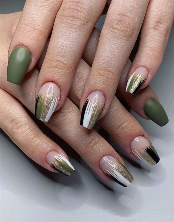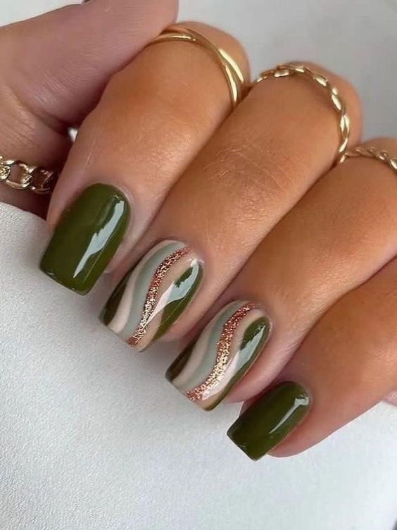 Совместно они создают палитру, отражающую смену времен года, переход от ярких летних цветов к более приглушенным, но таким уютным и насыщенным тонам. Оливково-хаки маникюр способен подчеркнуть природную красоту рук и ногтей, добавляя образу гармонии и естественности. Это сочетание подходит как для повседневного, так и для более особенного стиля, наполняя его теплыми оттенками осени.