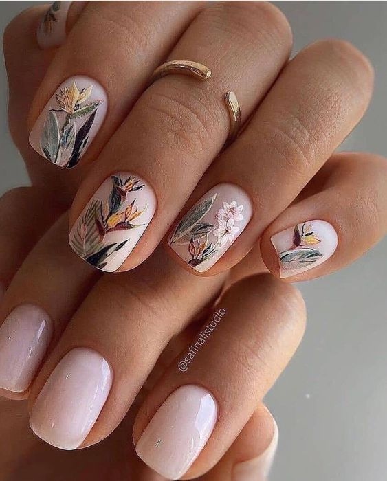 Когда дело доходит до рисунков в осеннем маникюре, можно вдохновляться природой, цветами и элементами, характерными для этого сезона. Вот несколько идей для осенних рисунков в маникюре: