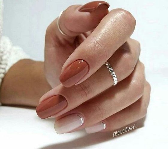 - нюдовый градиент. Создайте нюдовый градиентный маникюр, переходящий от одного нюдового оттенка к другому. Это может быть очень нежным и элегантным вариантом;