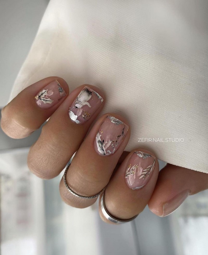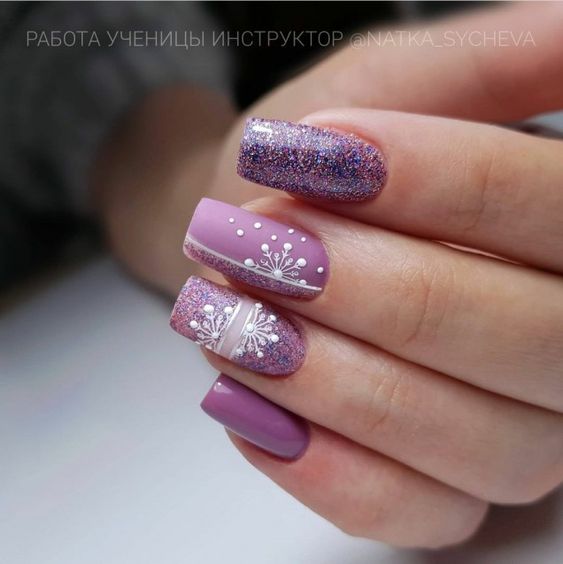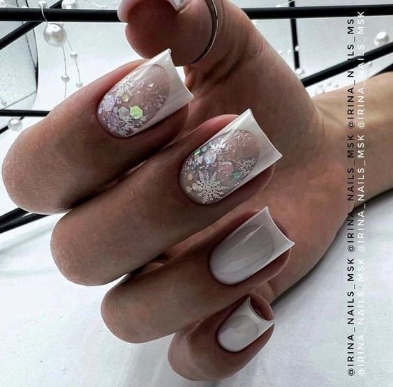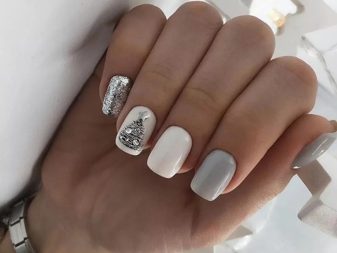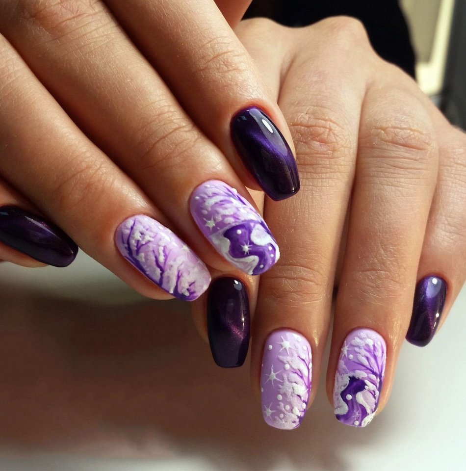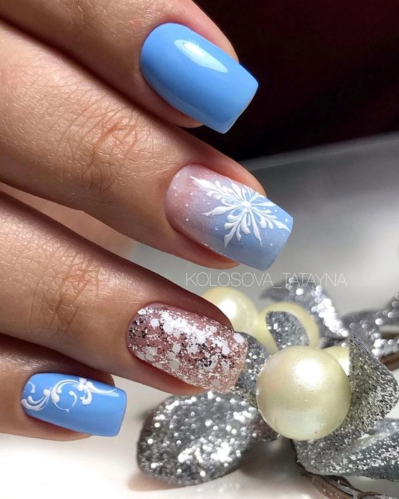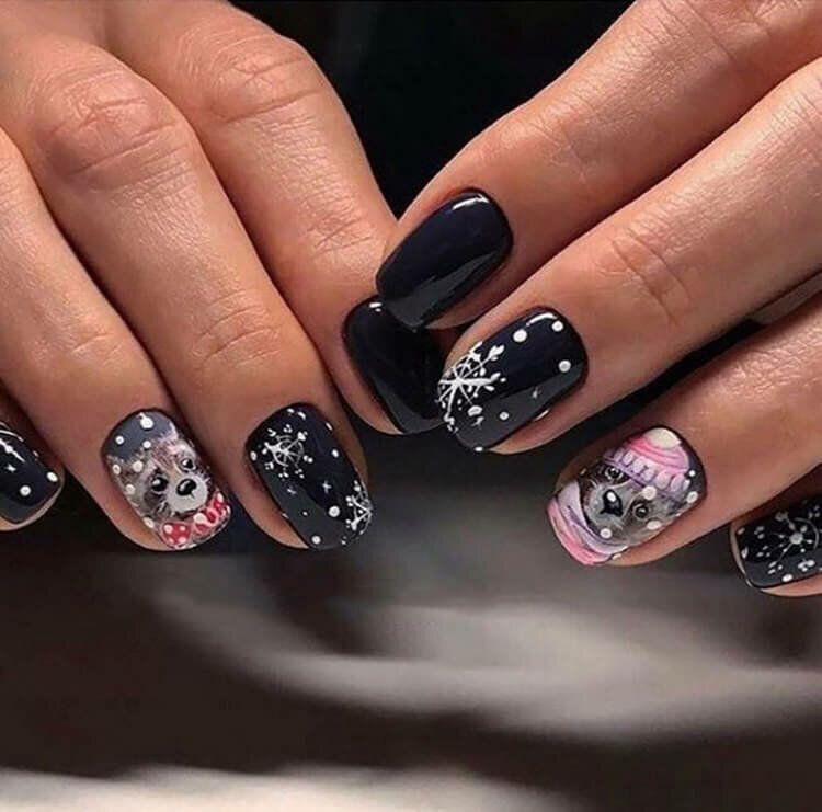 Маникюр в январе на разную длину ногтей