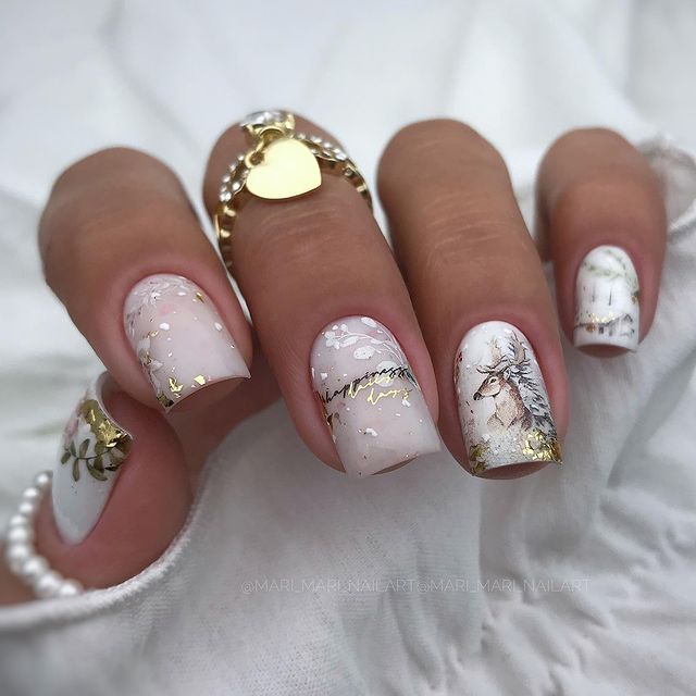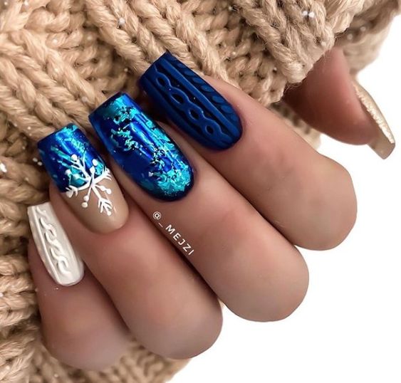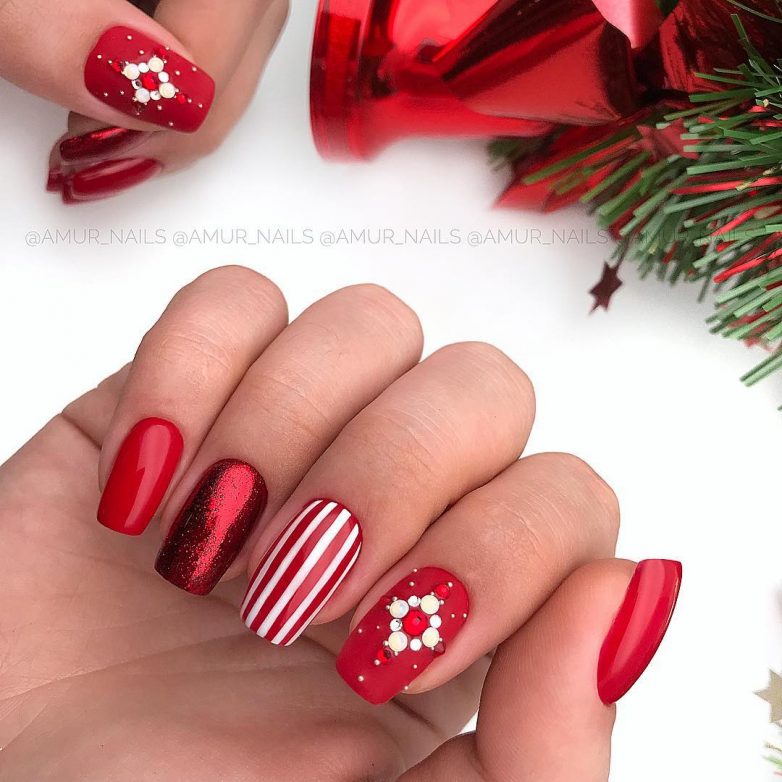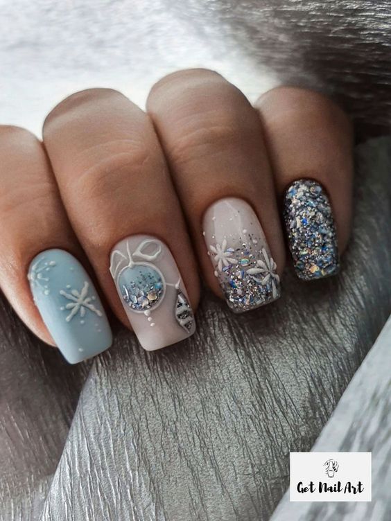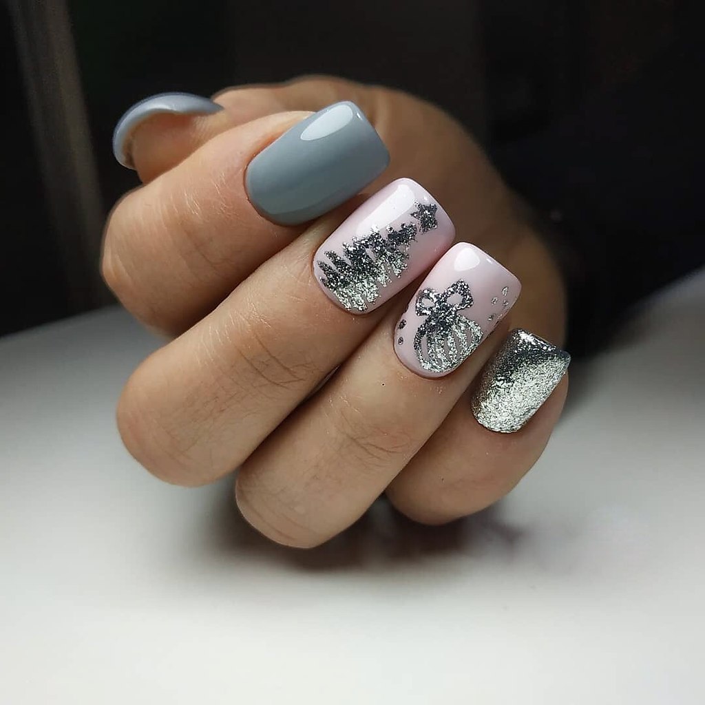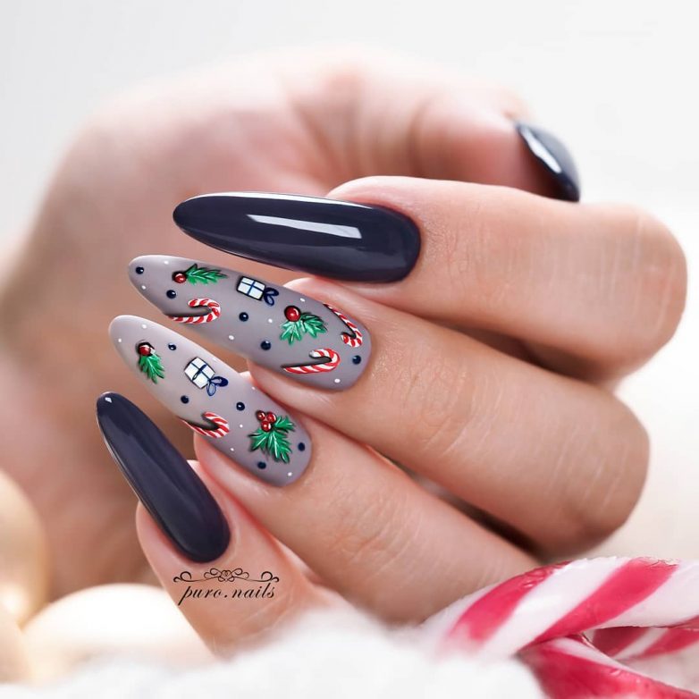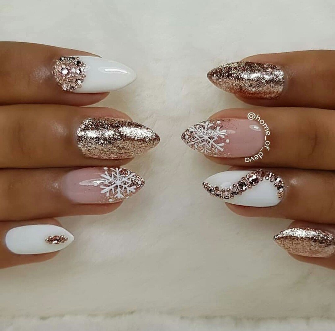 Маникюр в январе на разную длину ногтей