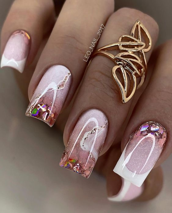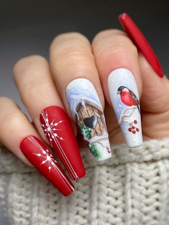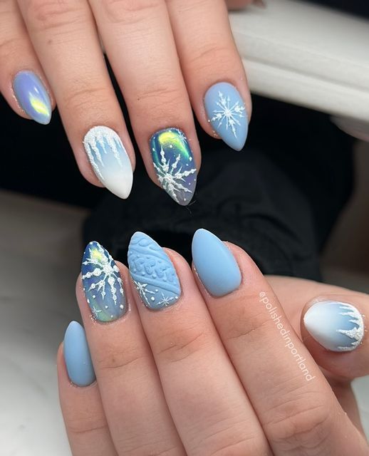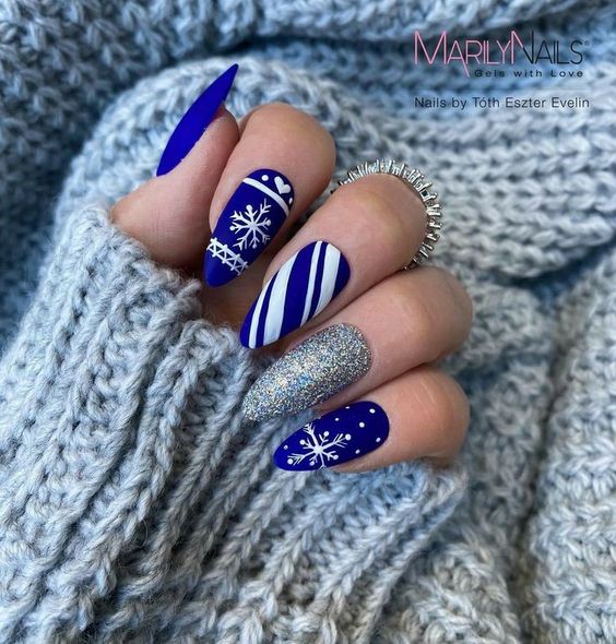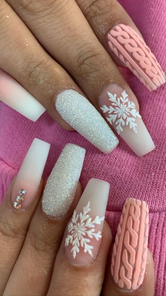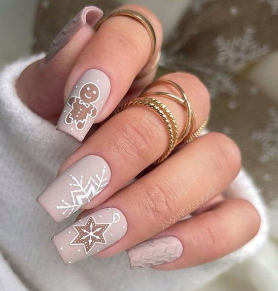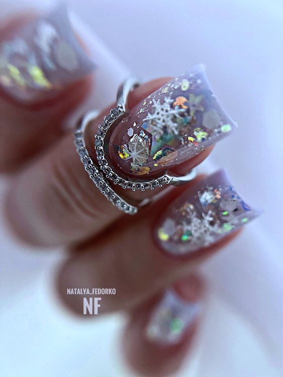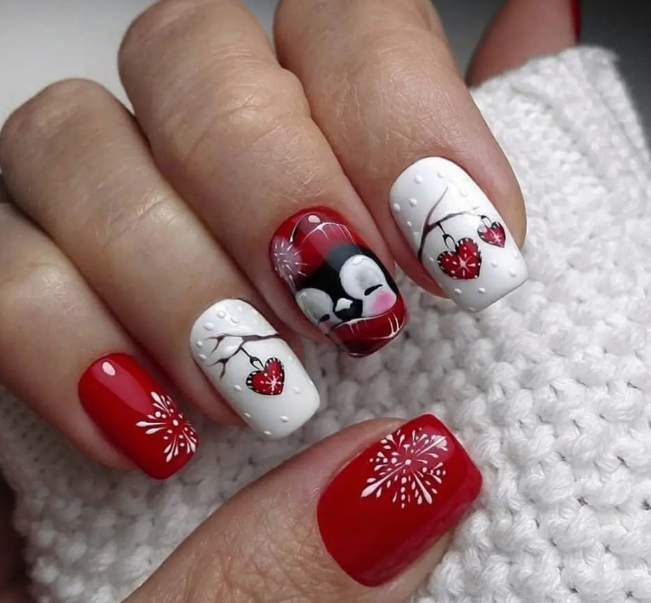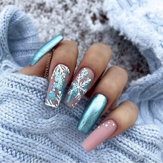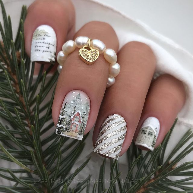 Маникюр в январе на разную длину ногтей
