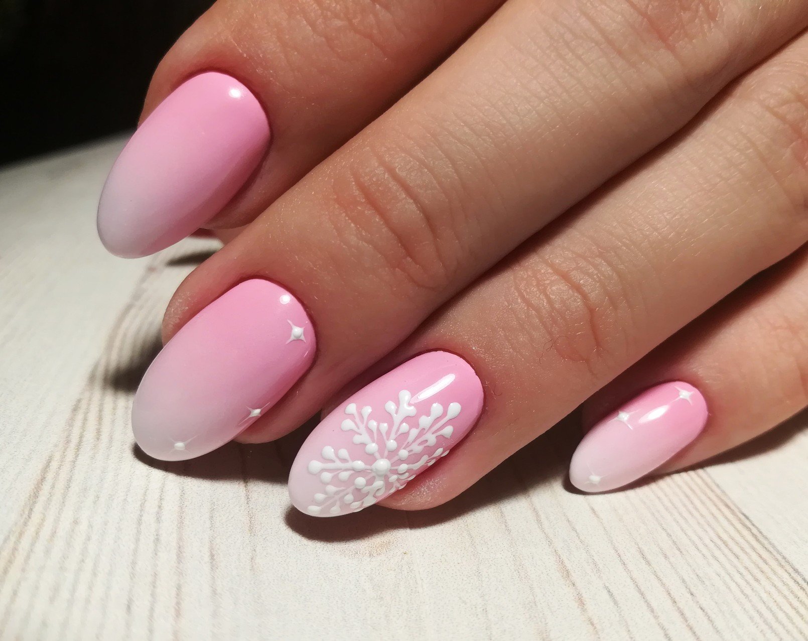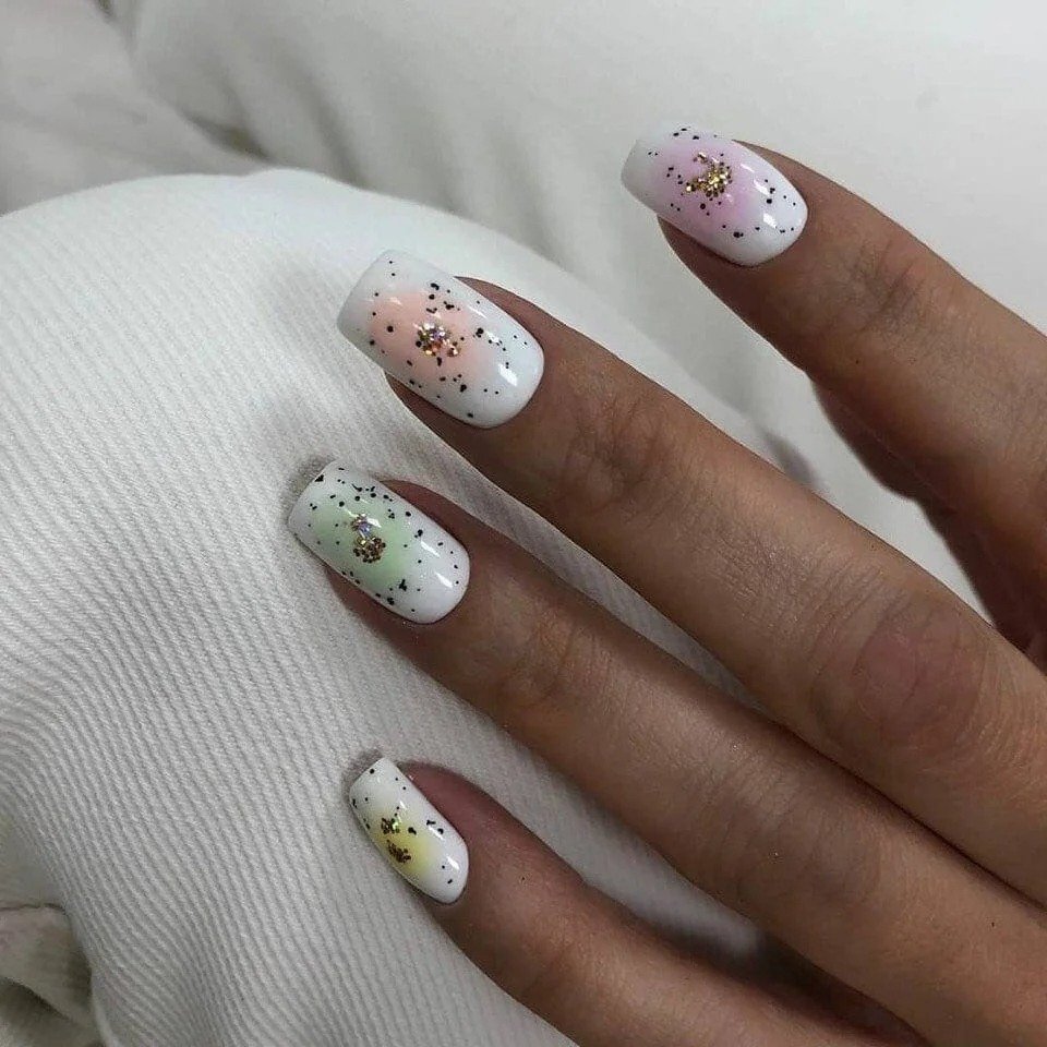 - размытые краски. Это актуальная для января тенденция, в которой главенствуют дизайны в стиле омбре и градиент. Но мастера советуют не делать слишком резких переходов, а использовать максимально близкие оттенки;