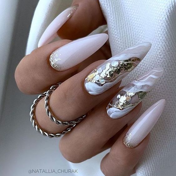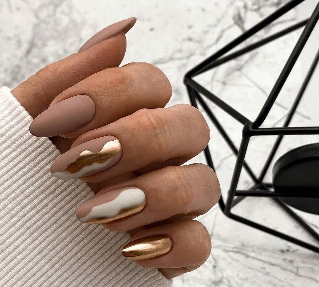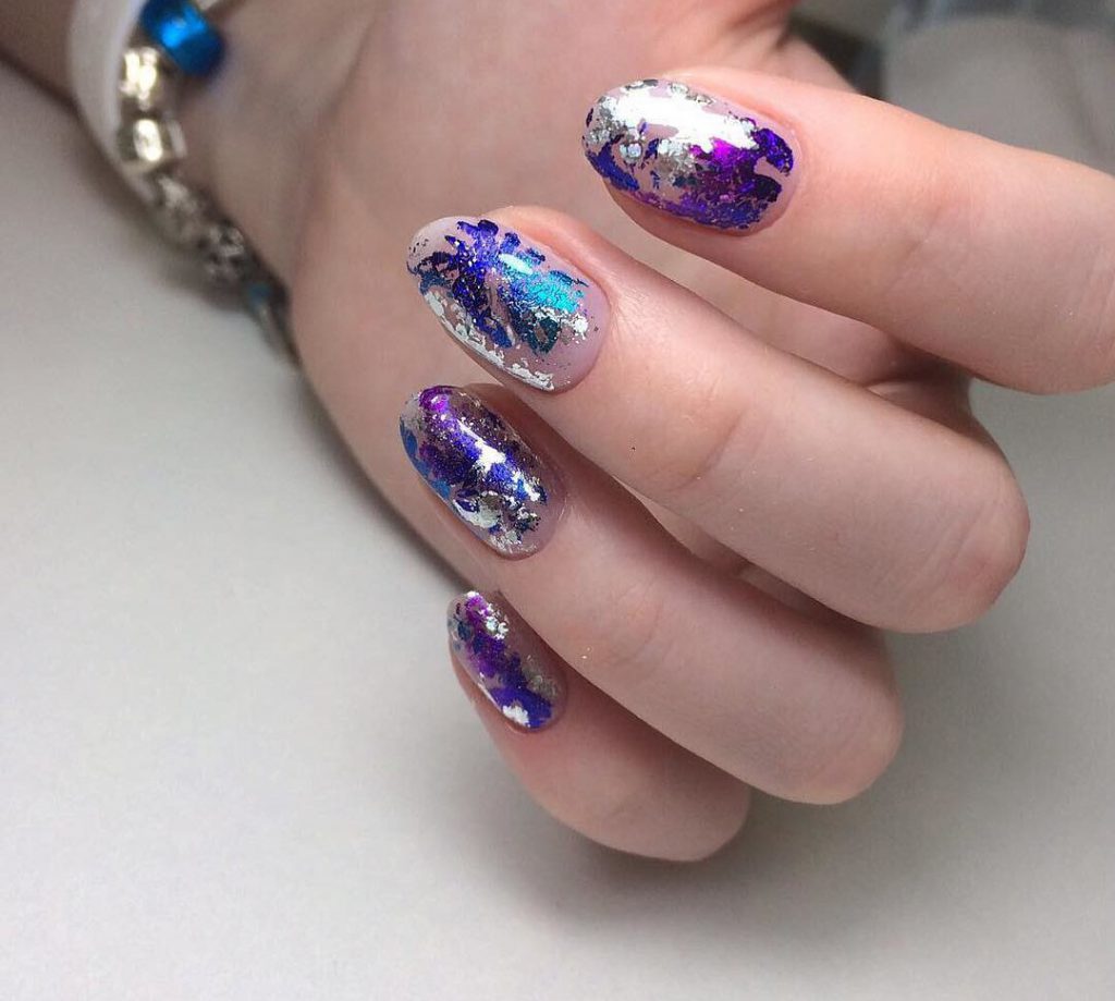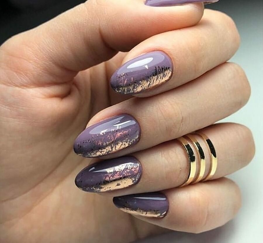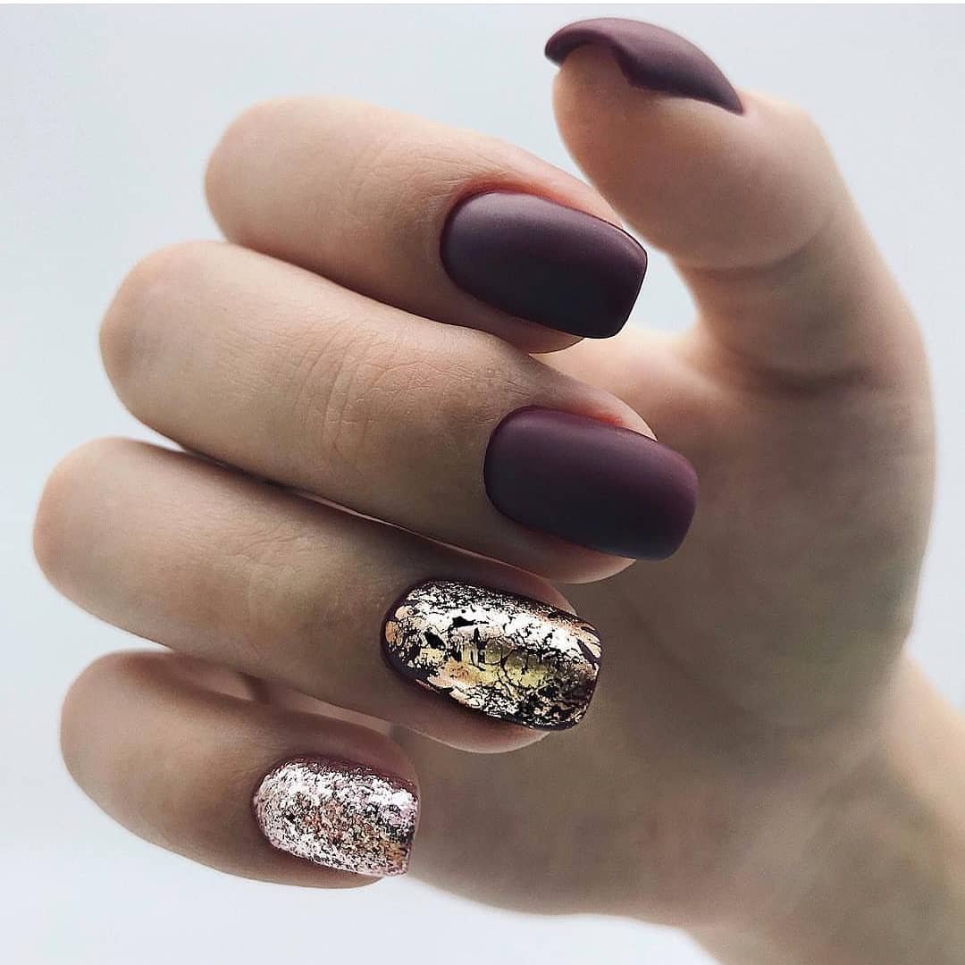 Для января 2023 актуально сочетание — матовый топ и акцент фольгой. Эффектно смотрится имитация мазков краски или выделение отдельного сектора на пластине. Не бойтесь переборщить — фольга всегда смотрится стильно и красиво.