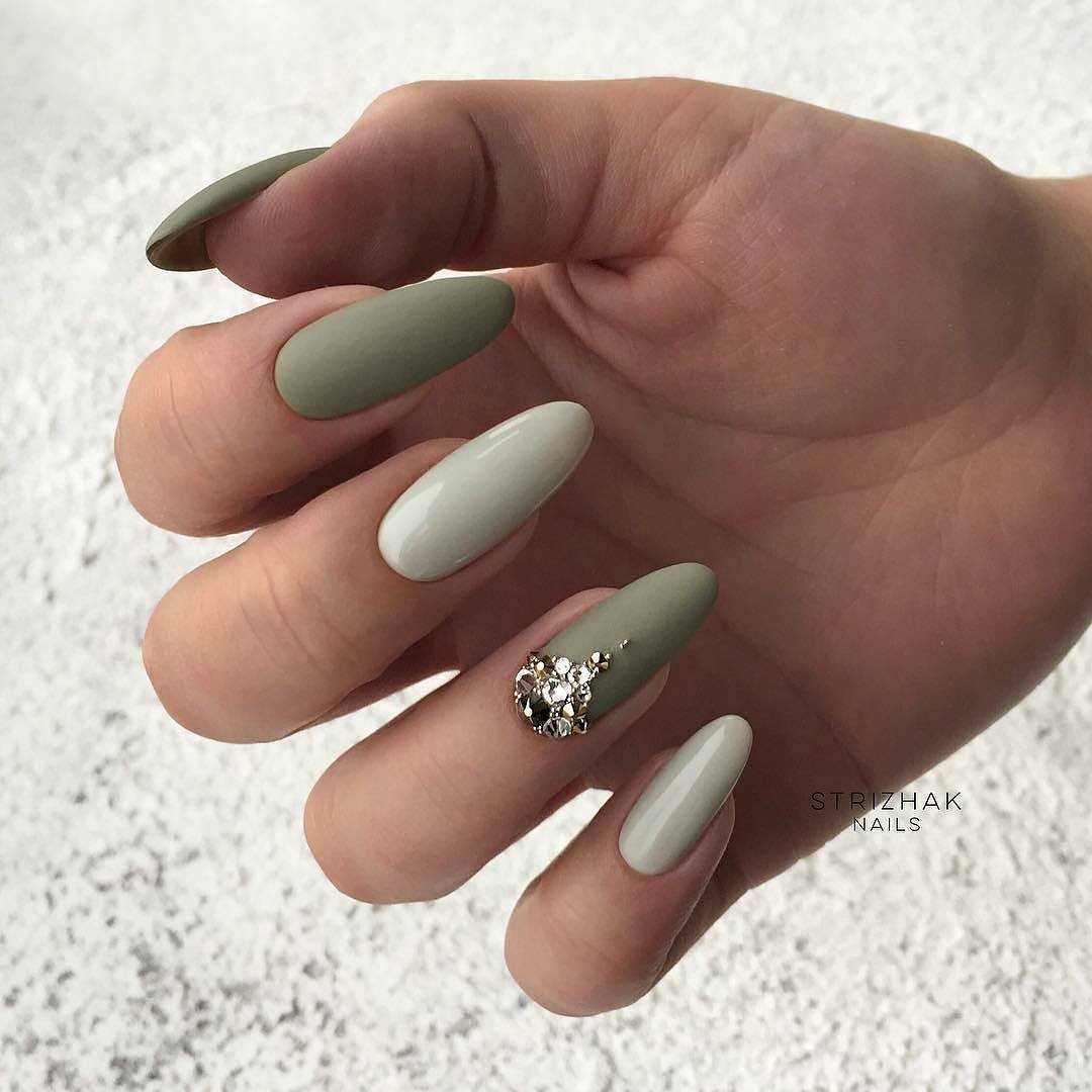 Основные праздники позади, но это не означает, что январский маникюр должен быть лишен блеска. Обязательно добавьте страз или глиттера. Не усердствуйте — дайте ноготкам отдохнуть. Отлично и очень эффектно смотрится дизайн в стиле минимализм на матовом фоне — одна или две стразики, немного глиттера на определенную область ногтя, и рисунки.