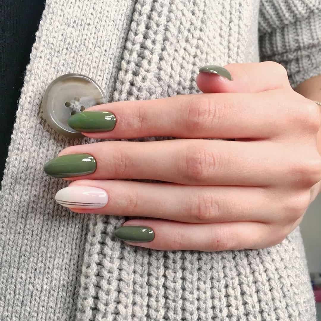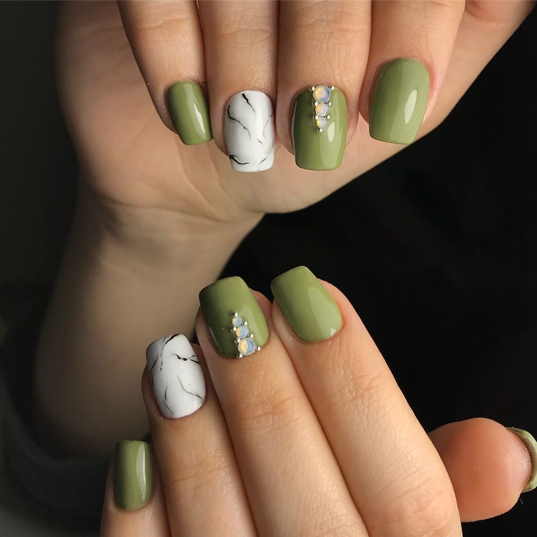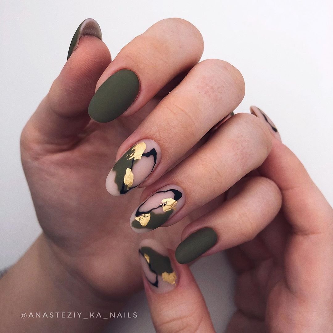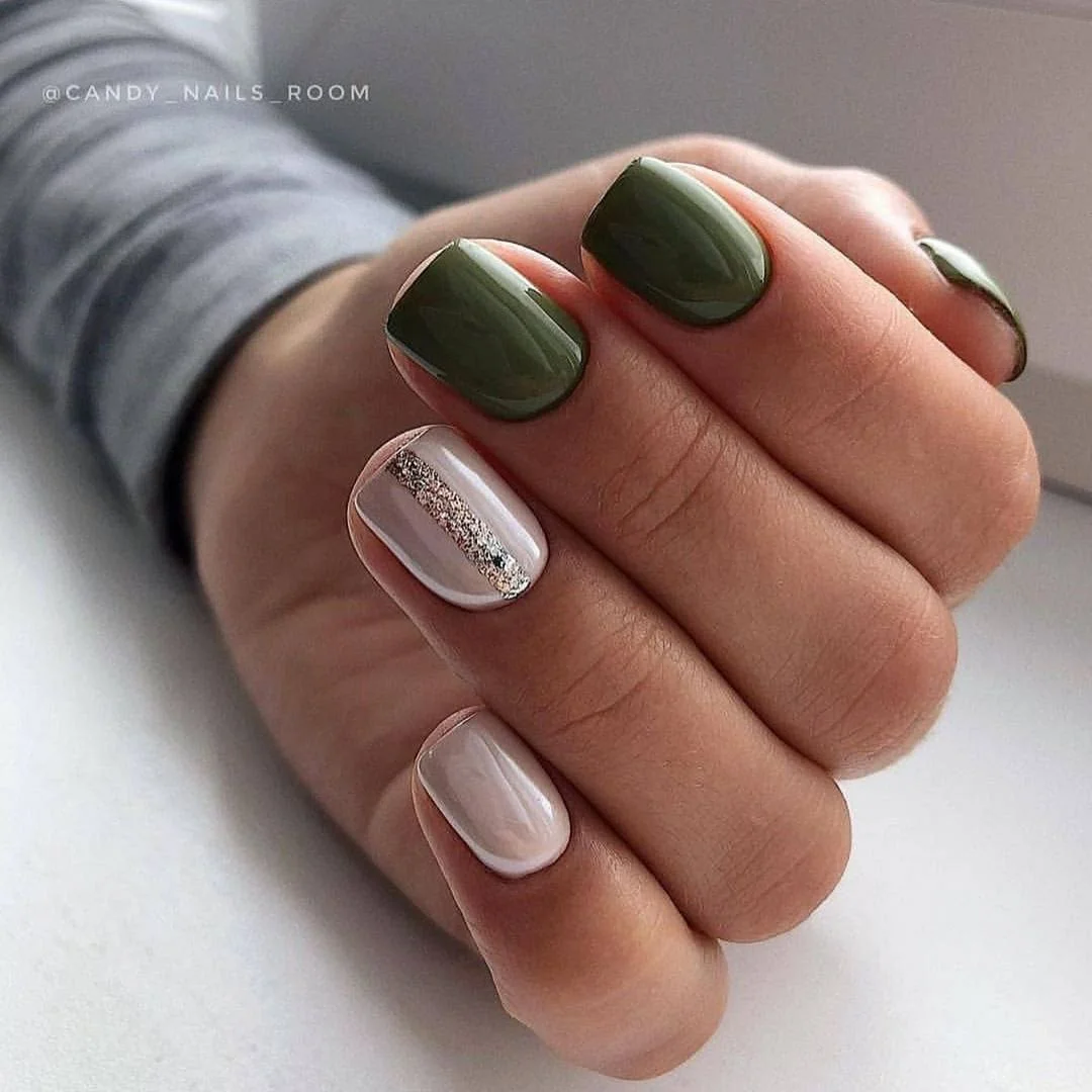 Перед Новым годом мы делали маникюр с травянистым зеленым. Ведь это оттенок ароматных еловых и сосновых веток. В январе можно отойти от этого цвета и обратить внимание другого представителя зеленой палитры — болотный или хаки. С ним можно сделать как повседневный, так и праздничный рождественский маникюр.