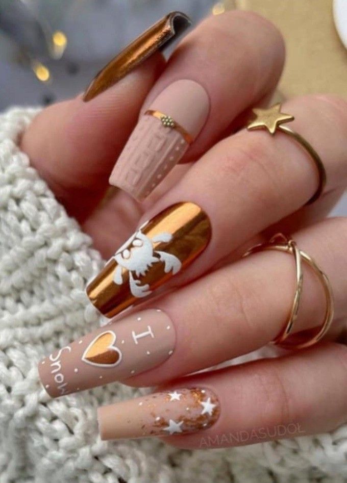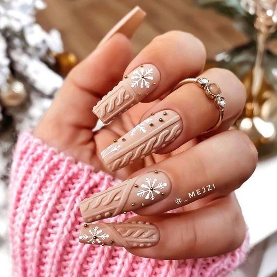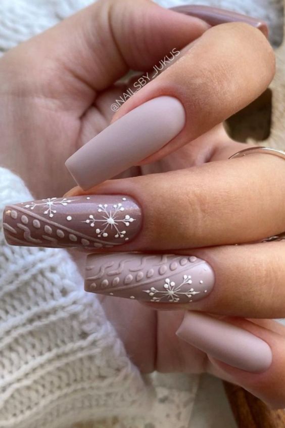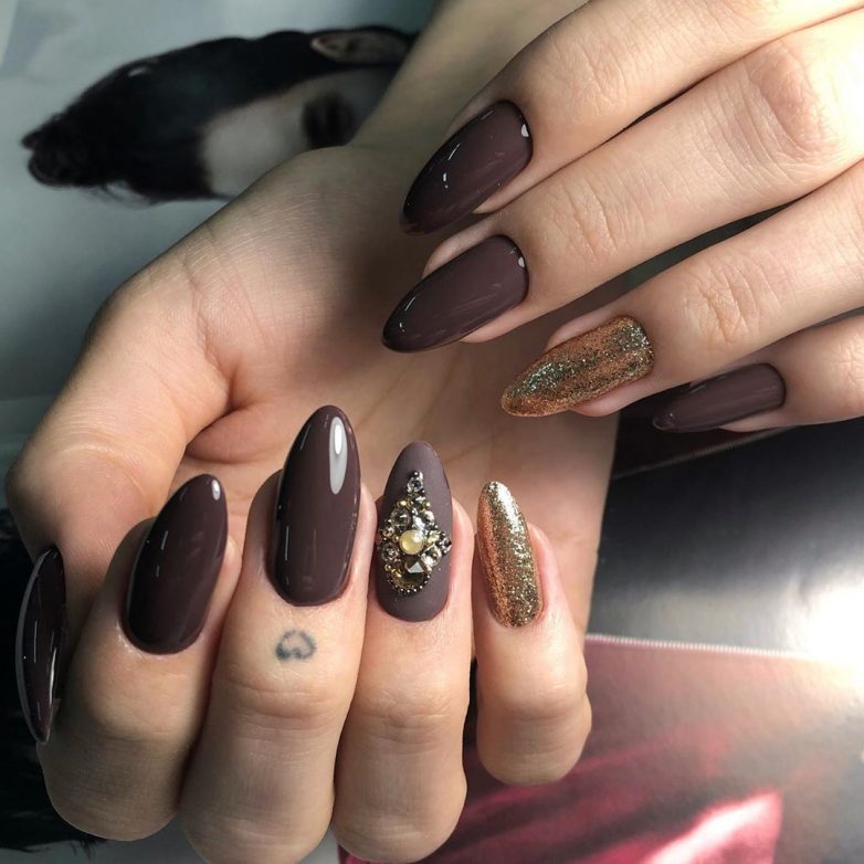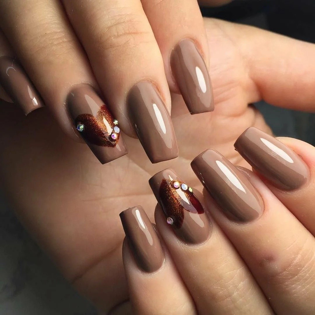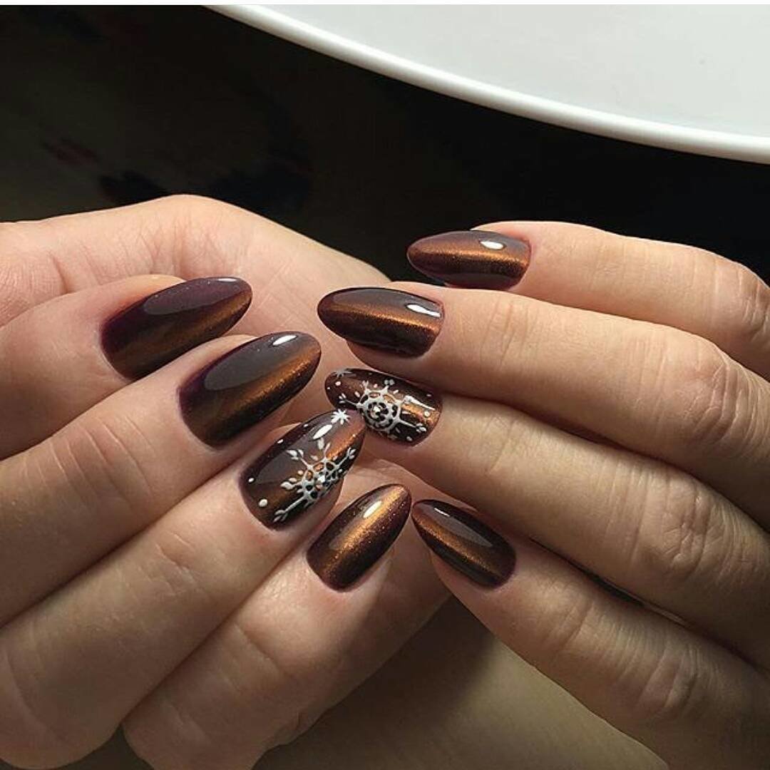 Январь — самый холодный месяц зимы. А значит по-прежнему актуальны теплые напитки — кофе, ароматный чай и какао. Черный или молочный шоколад — не имеет значения. Этот оттенок актуален в любом исполнении. Маникюр в январе можно сделать монохромным или дополнить вязаным дизайном, рисунком, узорами из акриловой пудры.