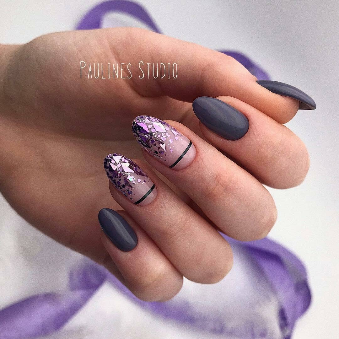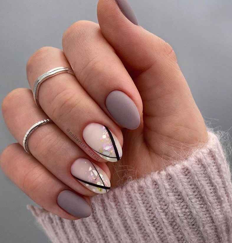 Оформить ноготки в матовой текстуре — отличная идея. Глянец, конечно, не теряет свой актуальности, но в январе мастера рекомендуют модницам чаще выбирать именно этот вариант. Такой маникюр смотрится удивительно стильно и благородно. Его можно дополнить блестящим акцентом, узором акриловой пудрой, флоком или нанести светоотражающий рисунок.