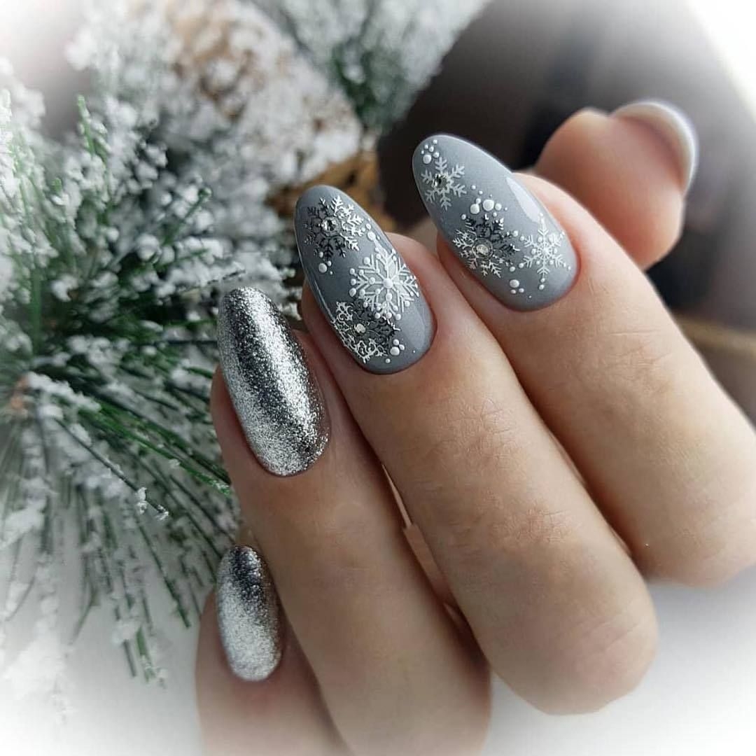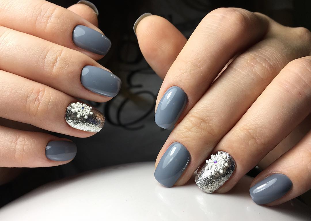 Надоел розовый, нюд или прозрачный лак, а позволить себе яркие оттенки на работе вы не можете? Сделайте в январе серый маникюр. Он отлично смотрится в матовом исполнении и с затейливыми рисунками. Серый сочетается с активными цветами типа оранжевого, зеленого, малинового. Стильный маникюр в январе можно сделать с серым и красным, глубоким синим, золотым и особенно серебряным. Последнее сочетание особенно подходит платиновым блондинкам, предпочитающим украшения из белого золота. А вот девушкам с другим цветотипом лучше выбирать серый с коричневым подтоном, дополняя его золотистыми рисунками.