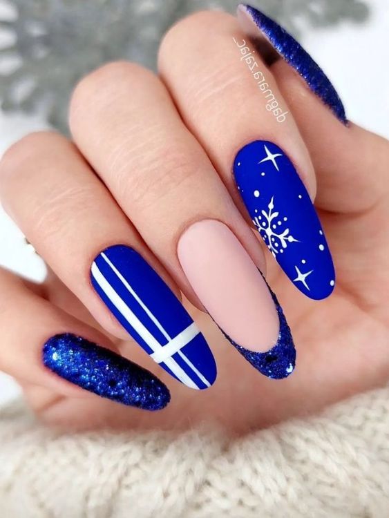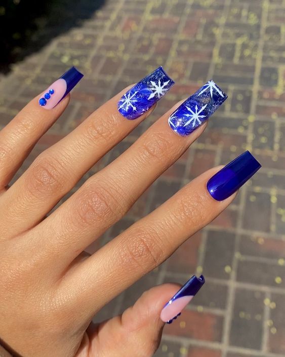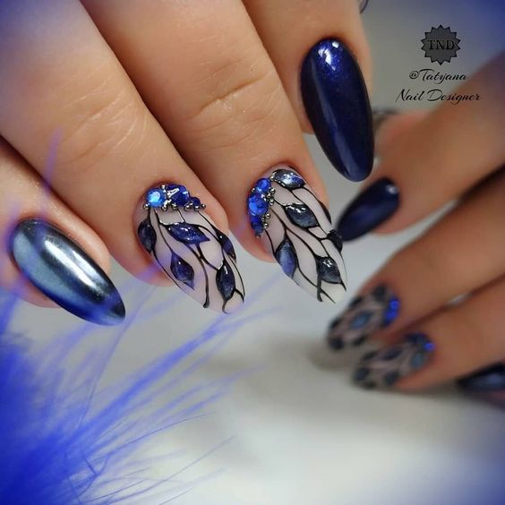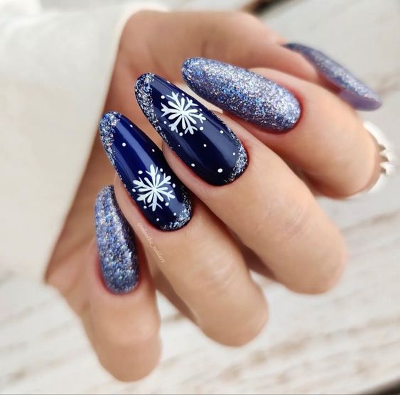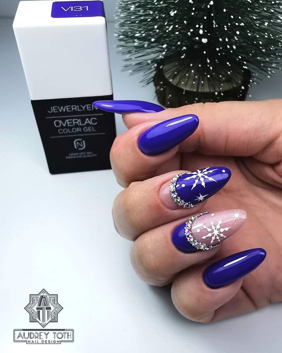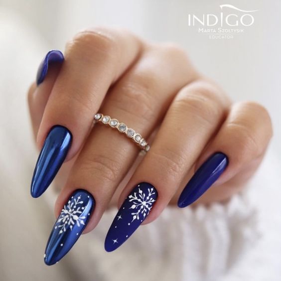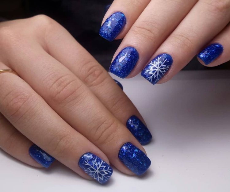Для маникюра в январе выбирайте глубокий синий — почти черный, как ясная морозная ночь. Этот цвет особенно подойдет тем, кто по какой-то причине не очень любит черный маникюр и считает его слишком мрачным.
