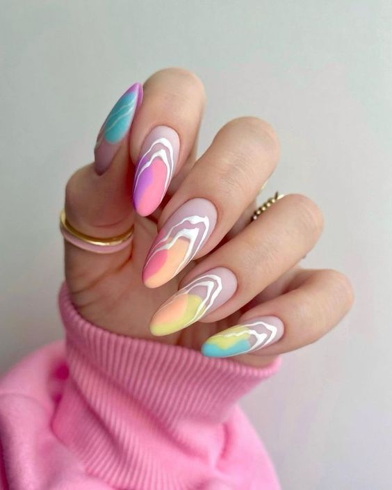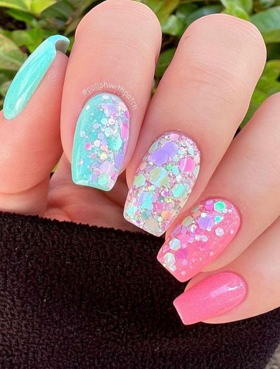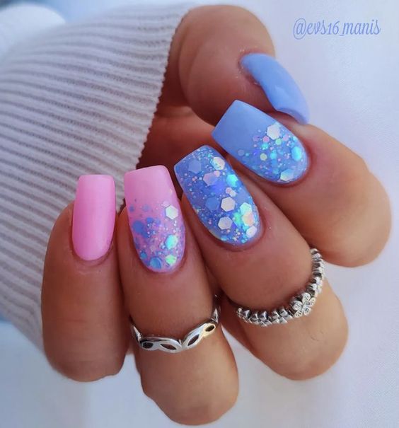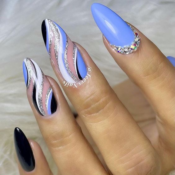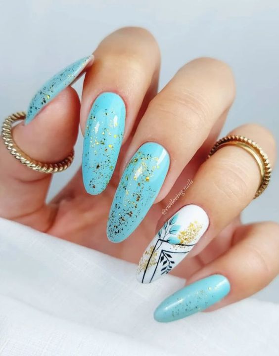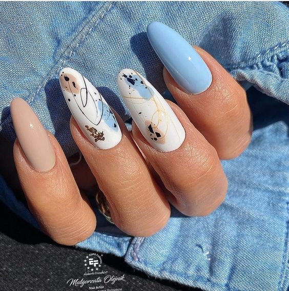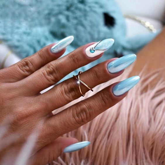 Наступил новый год, сменился и его покровитель. Если вы хотите сделать трендовый маникюр и быть под защитой нового символа, сделайте дизайн с рисунком кролика или кота. 2023 — год голубого водяного Кролика. Этот зверек любит небесно-голубой и оттенок «зеленое яблоко». Не обязательно сочетать в январском маникюре сразу оба оттенка. Хотя вы можете сделать монохромный синий маникюр, выделив один пальчик двумя актуальными оттенками с рисунком колор блок.