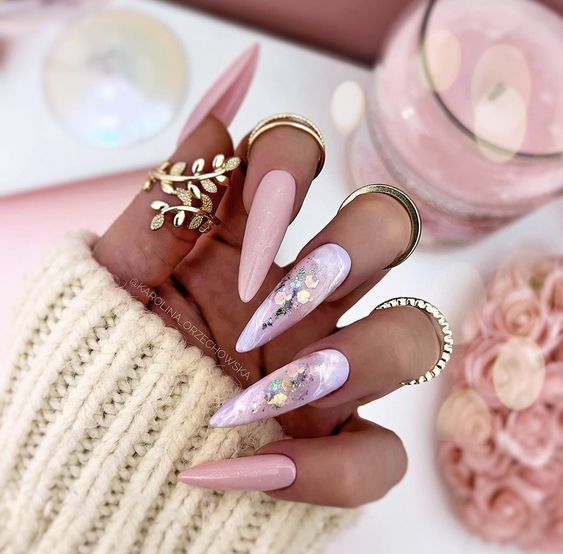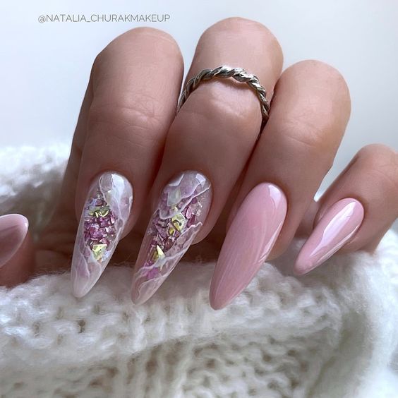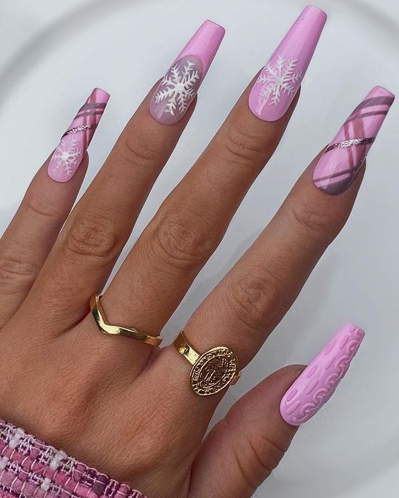 Разве можно представить маникюр в январе без розовой палитры? Это нежность, стиль и женственность. Кстати, розовый отлично сочетается с малиновым, если выбрать маникюр в стиле колор блок или геометрический рисунок.
