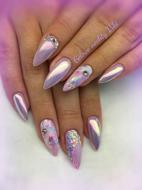 - скромный праздник. Самый главный праздник зимы отгремел, но впереди в календаре еще много красных дат. Это значит, что длинные ноготки должны переливаться словно елочные игрушки, но быть стильными. В январе актуален дизайн с втиркой, кошачьим глазом, глиттером и светоотражающим лаком;