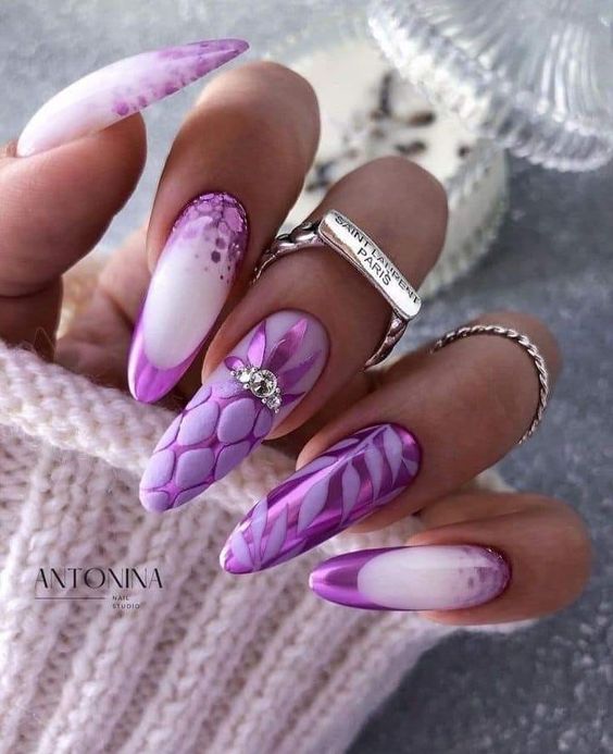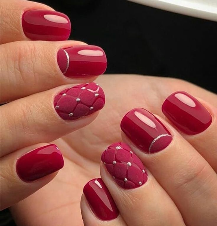 Это значит, что из красной палитры в новом 2023 году модницам стоит отдать предпочтение малиновым оттенкам. В чем особенность оттенка маджента? Он очень похож на фуксию, но без кислотного подтона и более теплый, насыщенный. Малиновый оттенок самодостаточен. С его помощью модницы могут создать стильный монохромный маникюр, например, в матовом исполнении. Но зима продолжается, а с ней и праздники, а значит маникюр будет более разнообразным, как по цветовому исполнению, так и в плане дизайна.