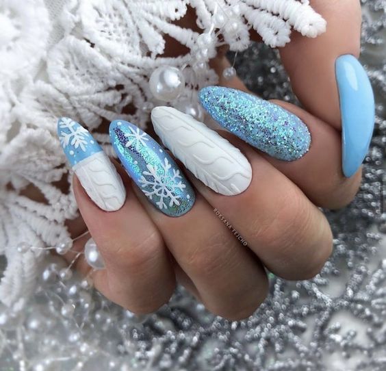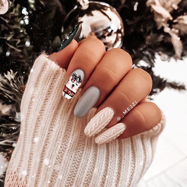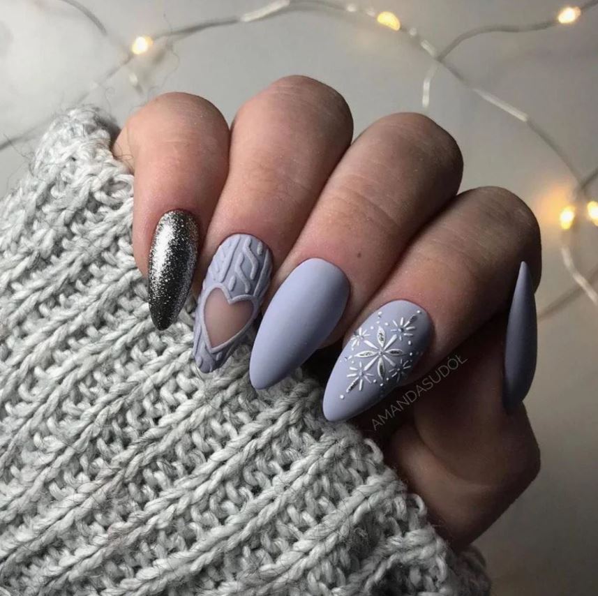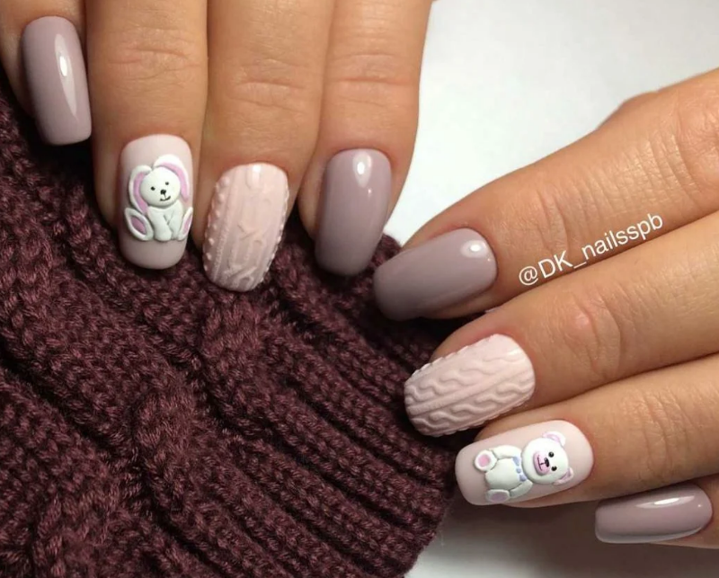 - утепляемся. Январь — холодный месяц, а значит ноготкам должно быть тепло. В тренде на большую длину вязаный маникюр.