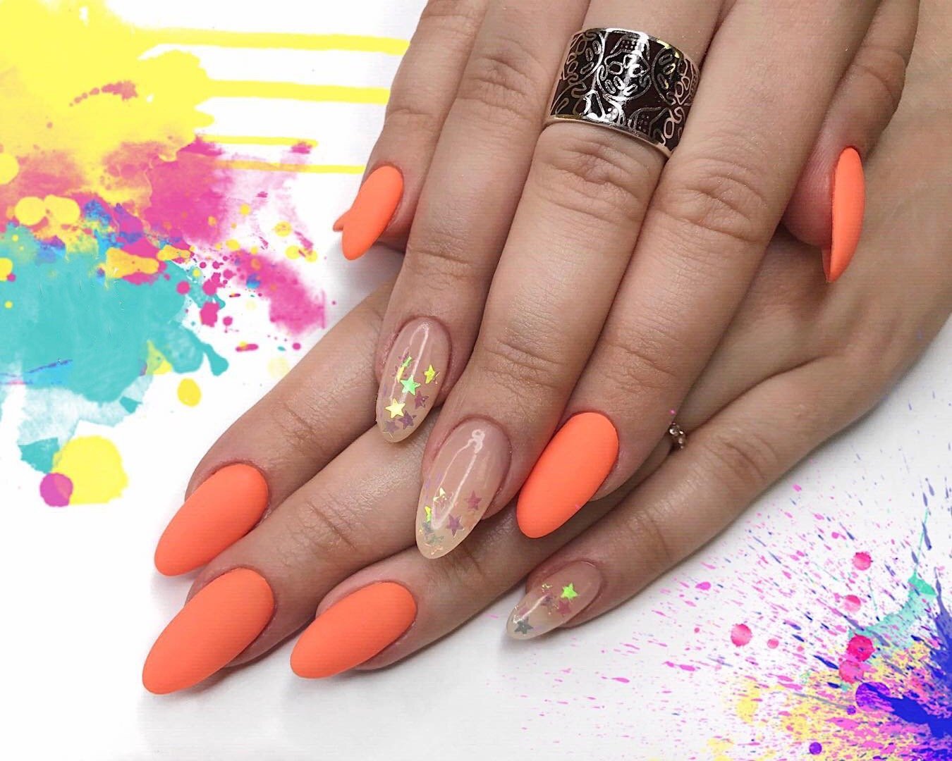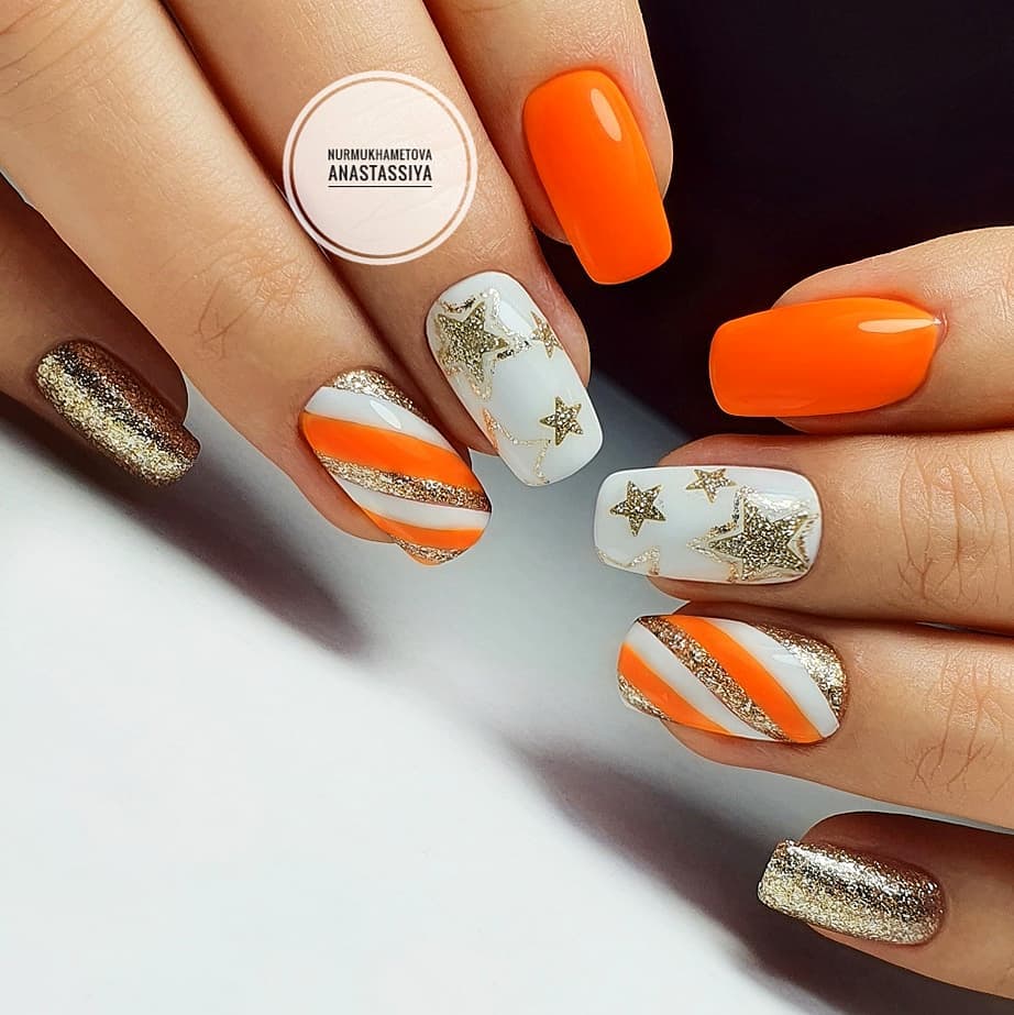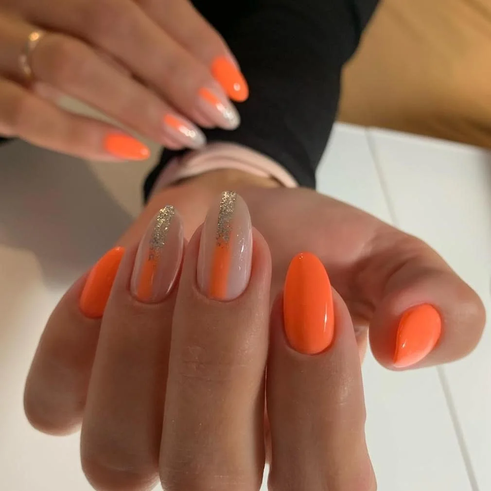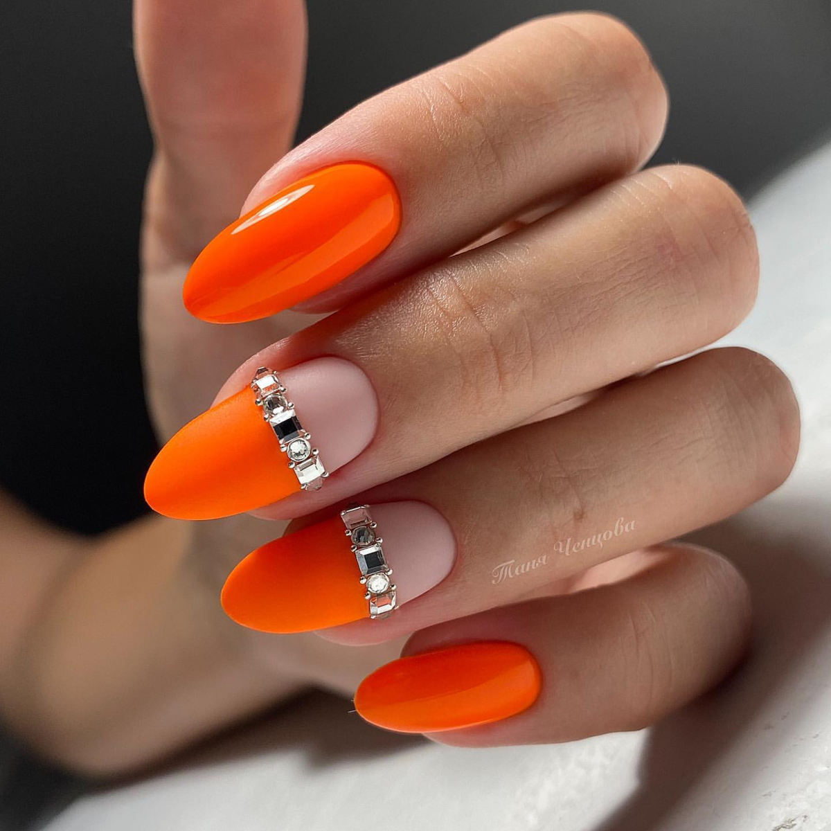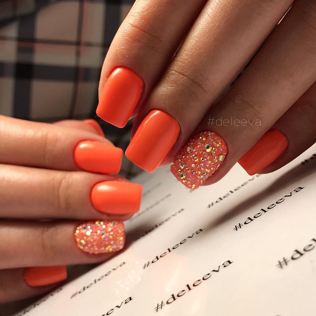 Думаете, что маникюр в январе должен быть сдержанным и не ярким? Ошибаетесь. Оранжевый — самый зимний и новогодний цвет. Это оттенок яркого зимнего солнца, апельсинов и мандаринов,хурмы, то есть всего того, что появляется в магазинах именно в январе. А значит в маникюре такие оттенки будут уместны.
