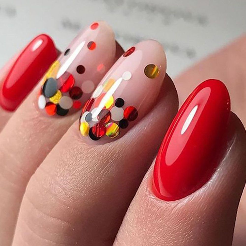 Стильно и очень модно. Для праздничного дизайна в январе выбирайте контрастные блестки круглой формы, а для повседневного — схожие по тону с базовым лаком. Камифубуки позволят создать многомерный дизайн, который отлично впишется в холодные будни и праздничные вечера.